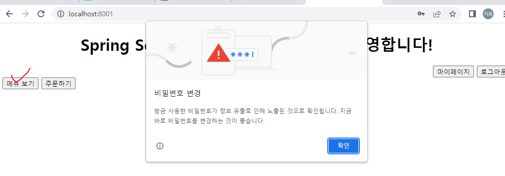 메뉴 클릭 주문 클릭 로그아웃 클릭