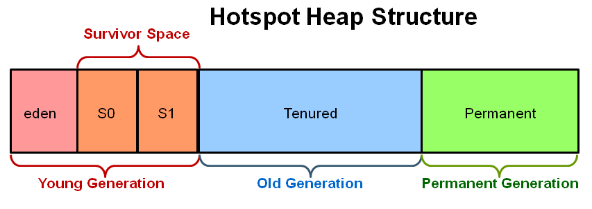힙 메모리의 구조는 Java8 이전과 이후로 달라짐 점이 있다. 먼저 Java 7 이전에는 아래 사진 처럼 Young + Old + Perm의 구역으로 나눠 졌고 모두 JVM이 실행하면서 할당 받은 메모리 내에 위치한다.