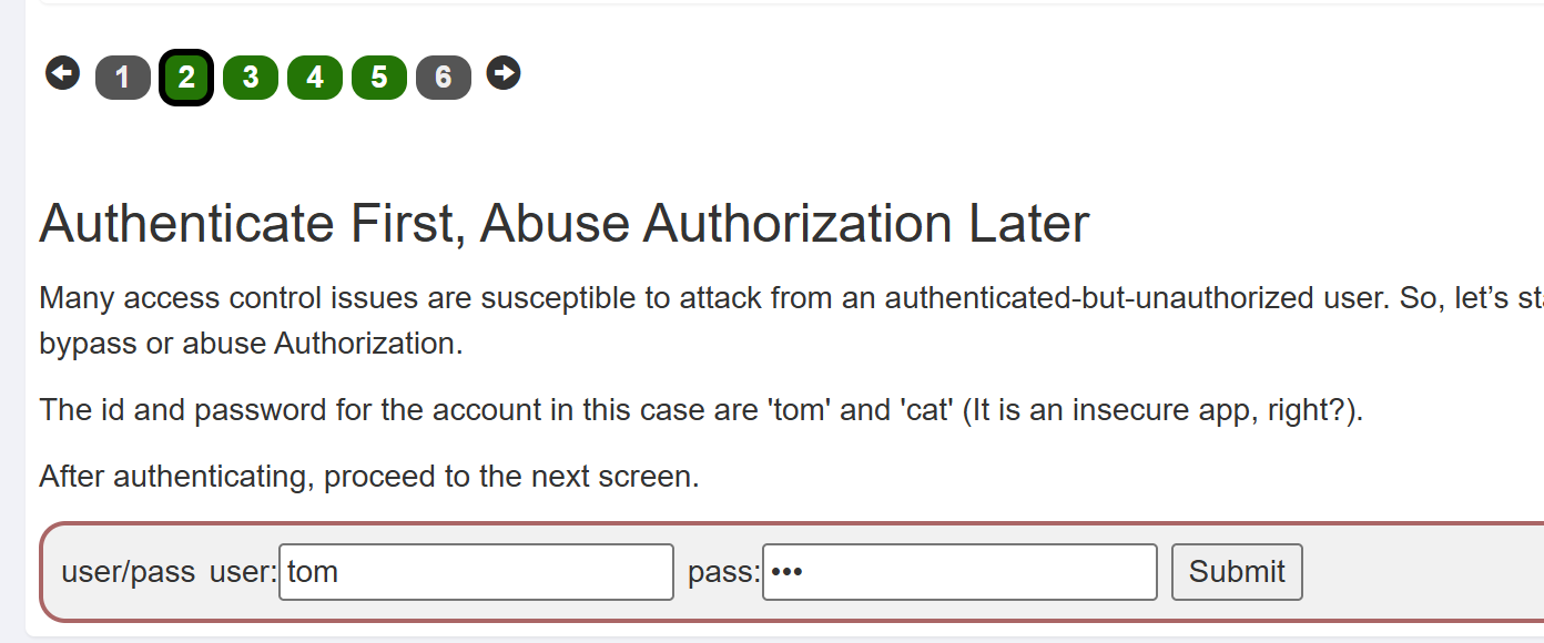 먼저 IDOR은 사용자로부터 취약점이 발생되기 때문에 먼저 주어진 tom, cat이라는 아이디와 비밀번호를 입력해 로그인 한다.