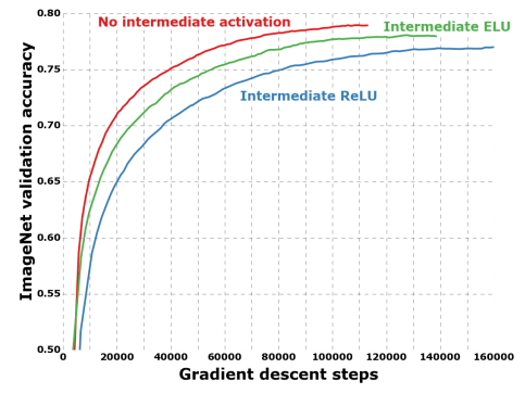 이 결과는 주목할 만합니다. Szegedy et al. [21]은 Inception 모듈의 경우 정반대의 결과를 보고했기 때문입니다. 비선형성이 유용성에 영향을 미치는 것은 중간 피처 공간의 깊이에 따라 달라질 수 있습니다.