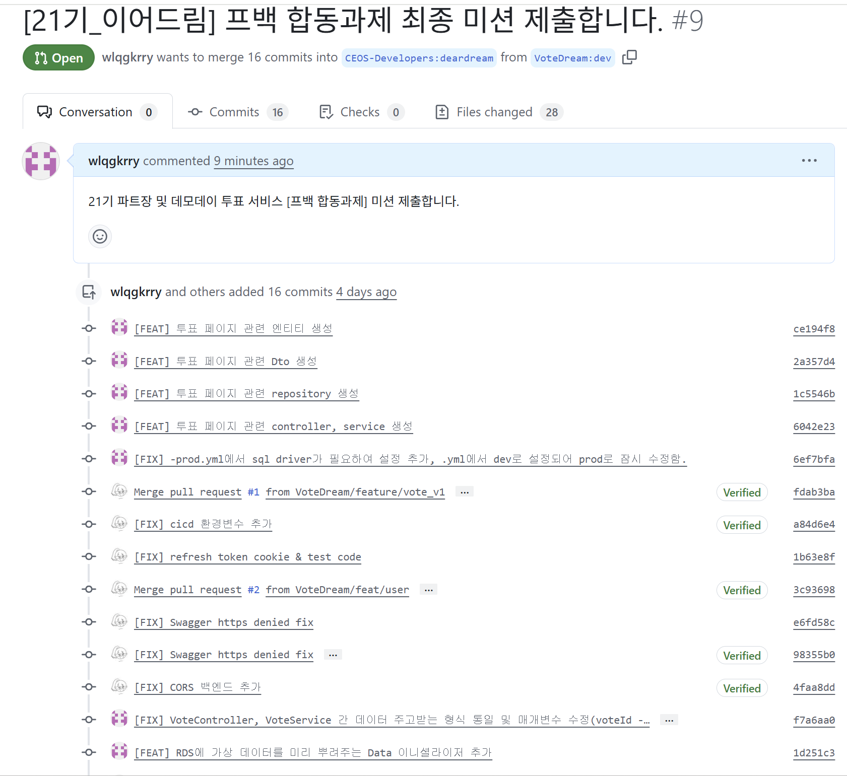 - 리팩토링 2 : voteController와 voteService 간 타입을 바꿔주는 등의 잡다한 작업을 converter라는 폴더를 만들어 따로 빼려고 생각중입니다. (controller - converter - service 구조가 되는 셈.) 매번 계층 구조 분리의 중요성에 대해 각 과목에서 공부를 하게 되는데 막상 각 계층에 맞는 작업만을 잘 분리해서 넣는건 고민할만한 문제가 되는 것 같습니다.