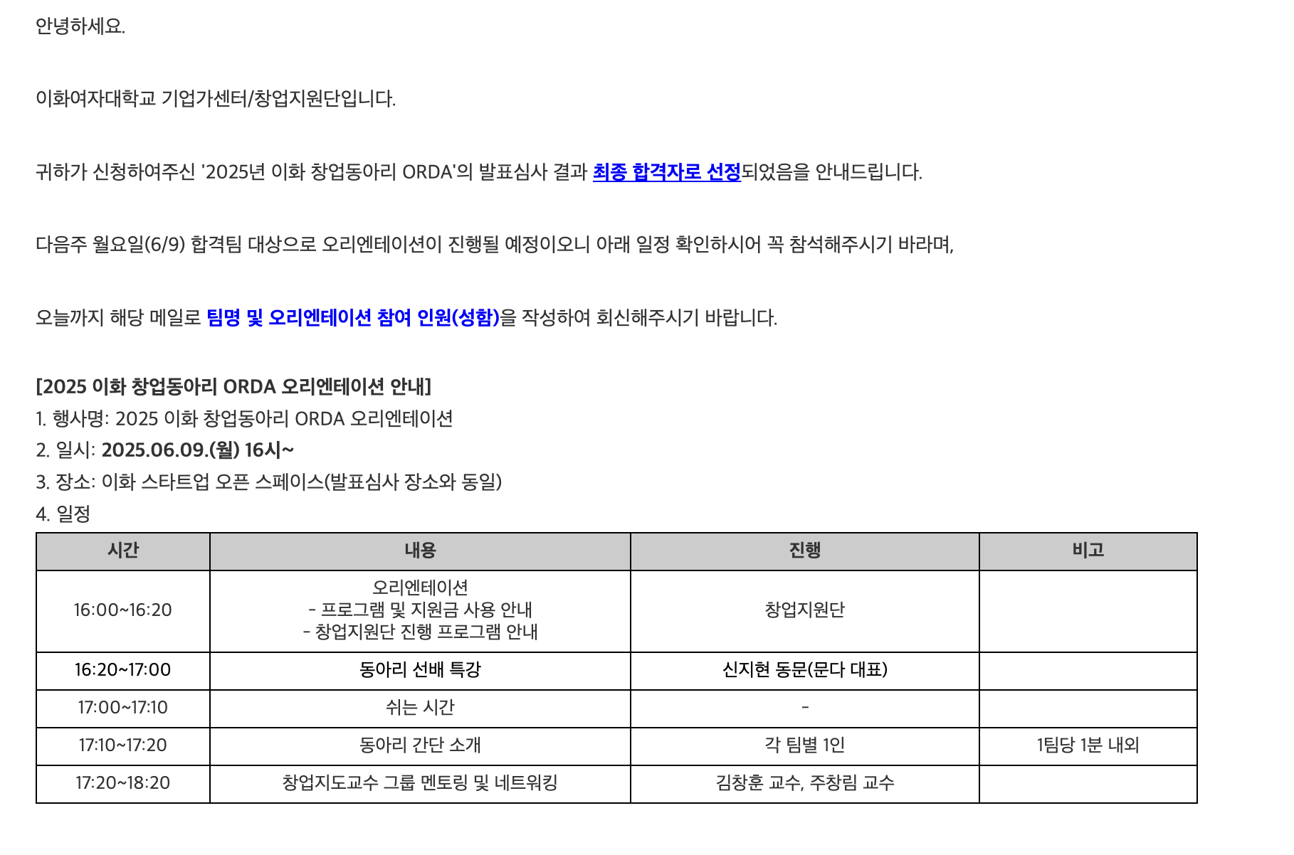 2025 이화 창업동아리 ORDA 오리엔테이션