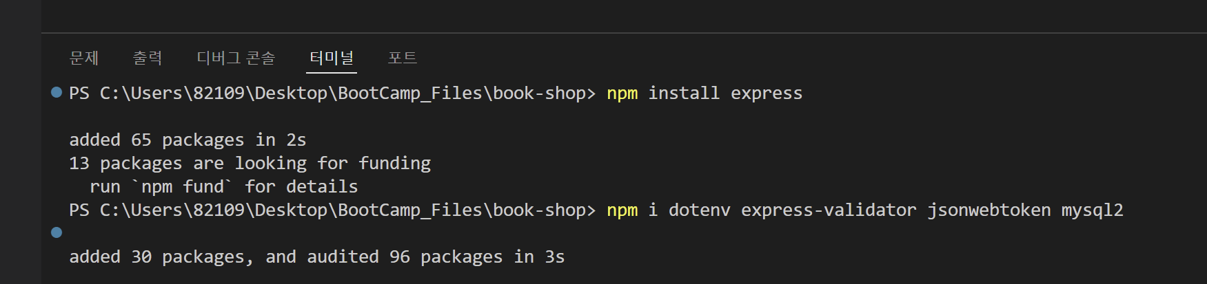 node_modules : Node.js, Express에 필요한 모듈들이 설치되는 폴더