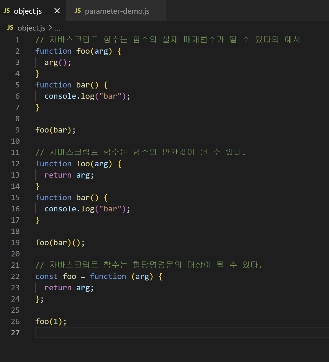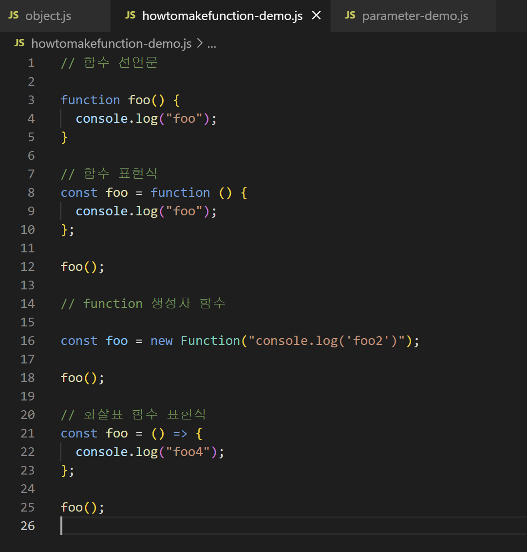 각 파일 : object.js, parameter-demo.js 파일에서 확인 가능