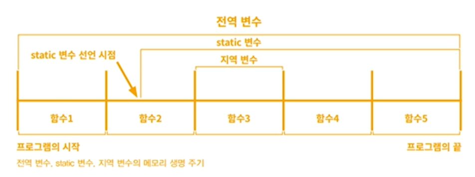 static 변수 -> 데이터 영역에 저장, 내가 생성할 시 생성. 프로그램이 종료될 때 소멸