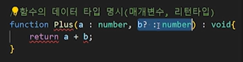 이런 경우를 방지하기 위해 사진에서 age?: number;처럼 변수 뒤에 물음표를 붙이면 있어도 되고 없어도 되는 요소가 됨.