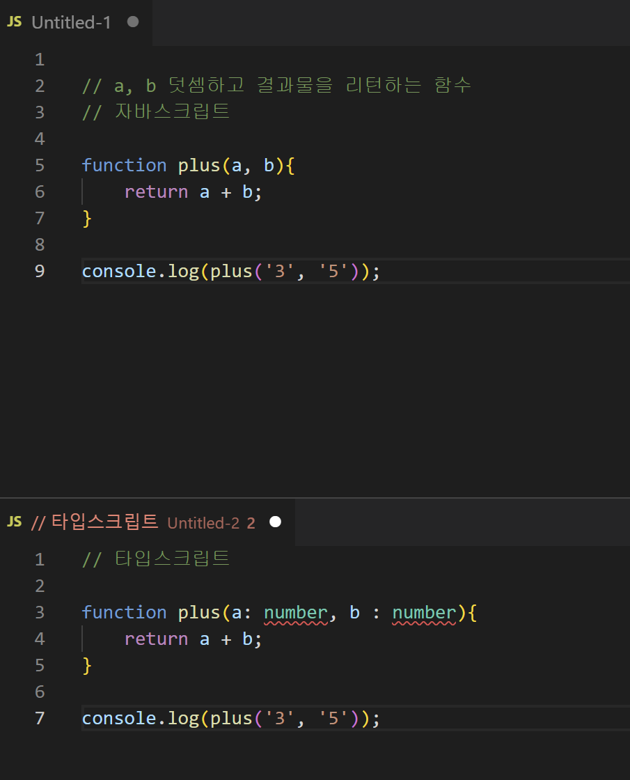 기존 자바스크립트의 문제 : 변수에 어떤 데이터 값도 할당할 수 있음