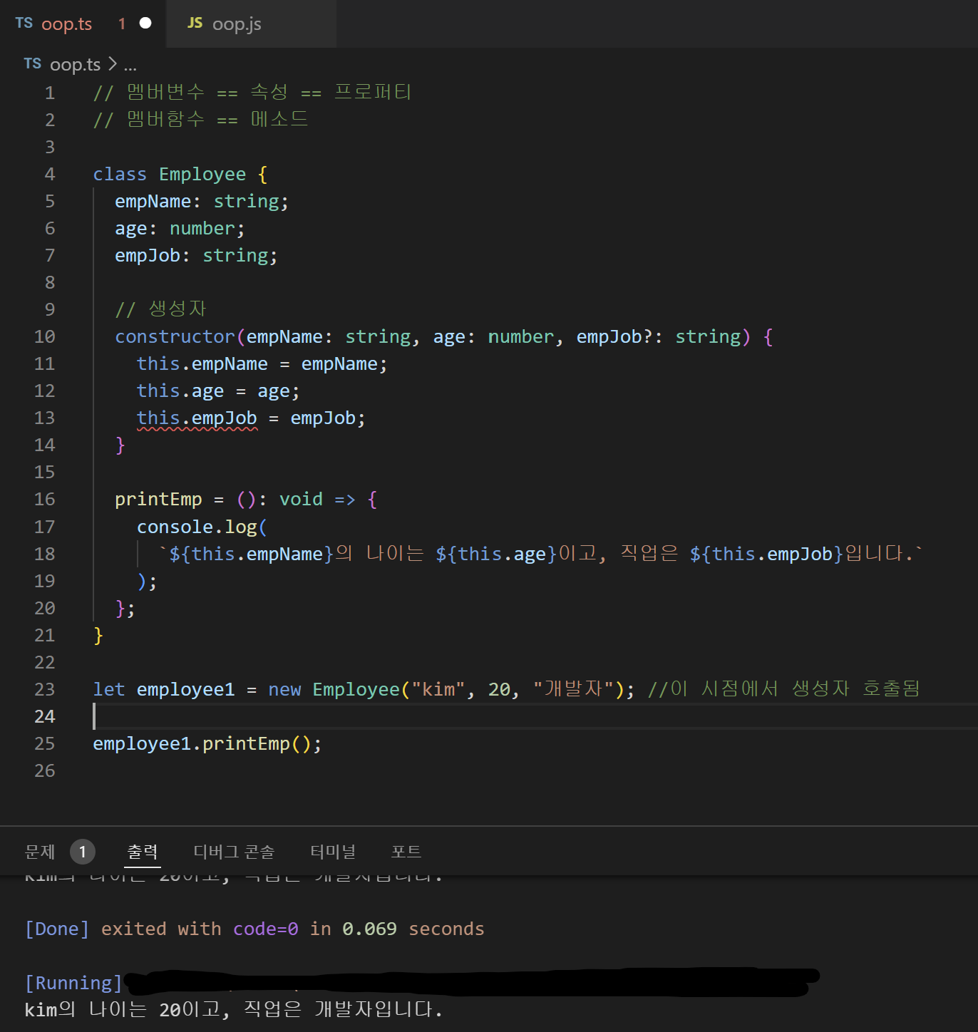 타입스크립트에서는 그렇지 않음 -> constructor을 쓴다.