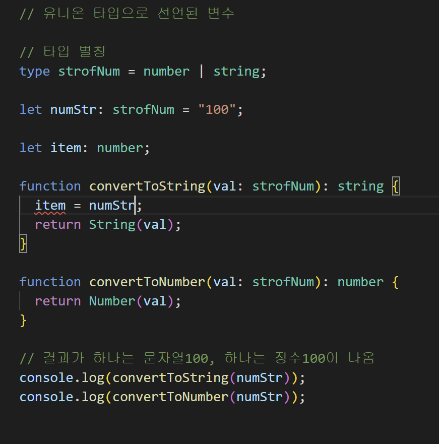 item에 빨간줄이 그어짐 -> 문자열도 들어올 수 있다는 위험성을 알려줌