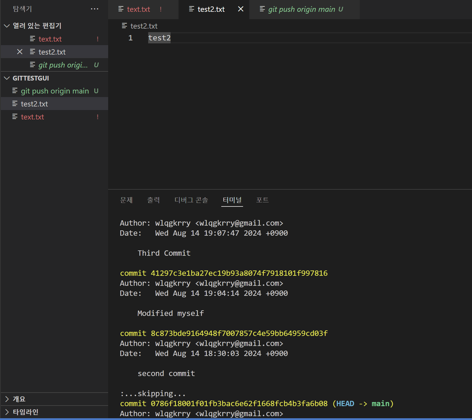 3) git log : 어디까지 찍혔는지를 봄