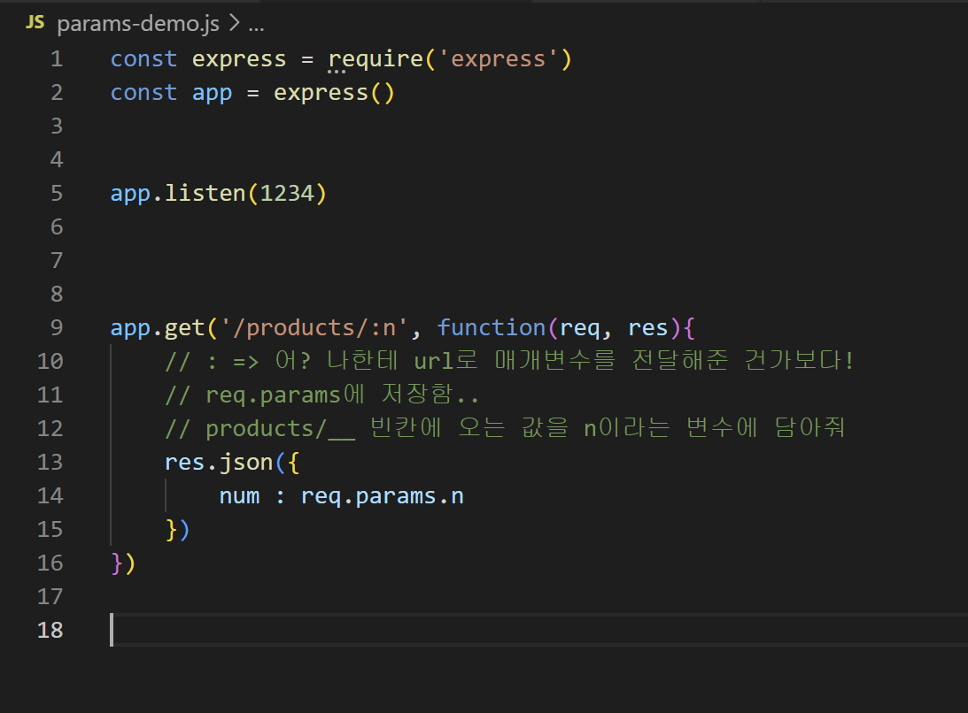 이런식으로 params을 이용해서 n에 입력하는 수를 객체에 함께 출력을 할 수 있음