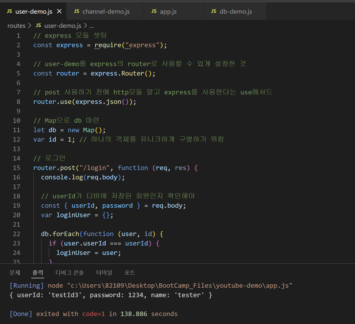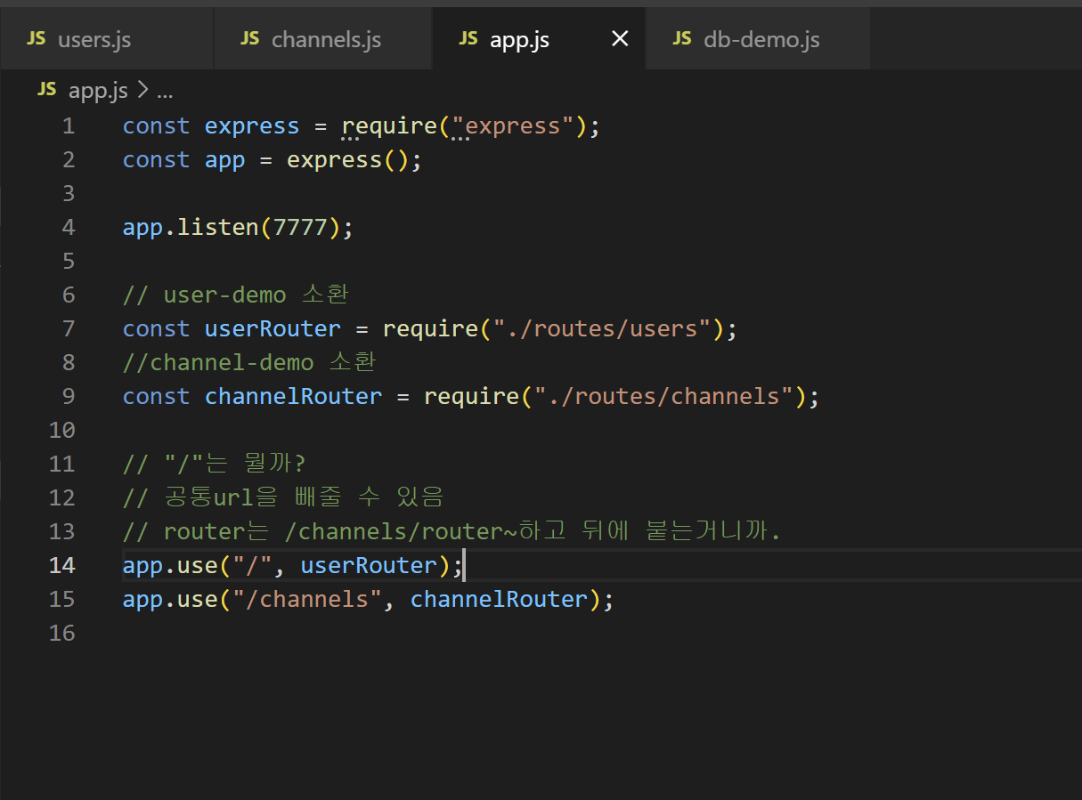 2. Router : Request의 URL에 따라 루트(route)를 정해줍니다. = 어디로 갈지 길만 정해줘요