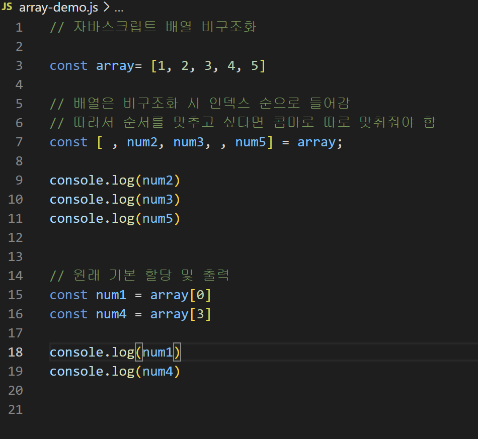 객체의 비구조화 경우 변수 이름을 실제 객체의 요소 이름과 같게 해줘야함