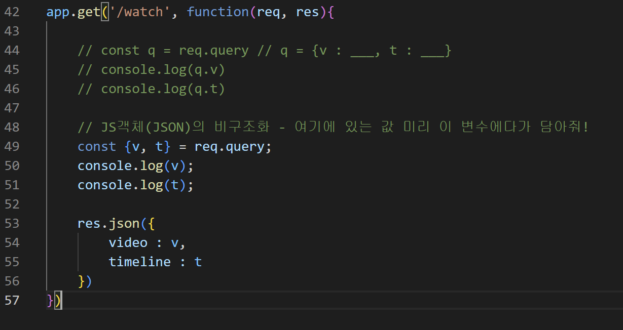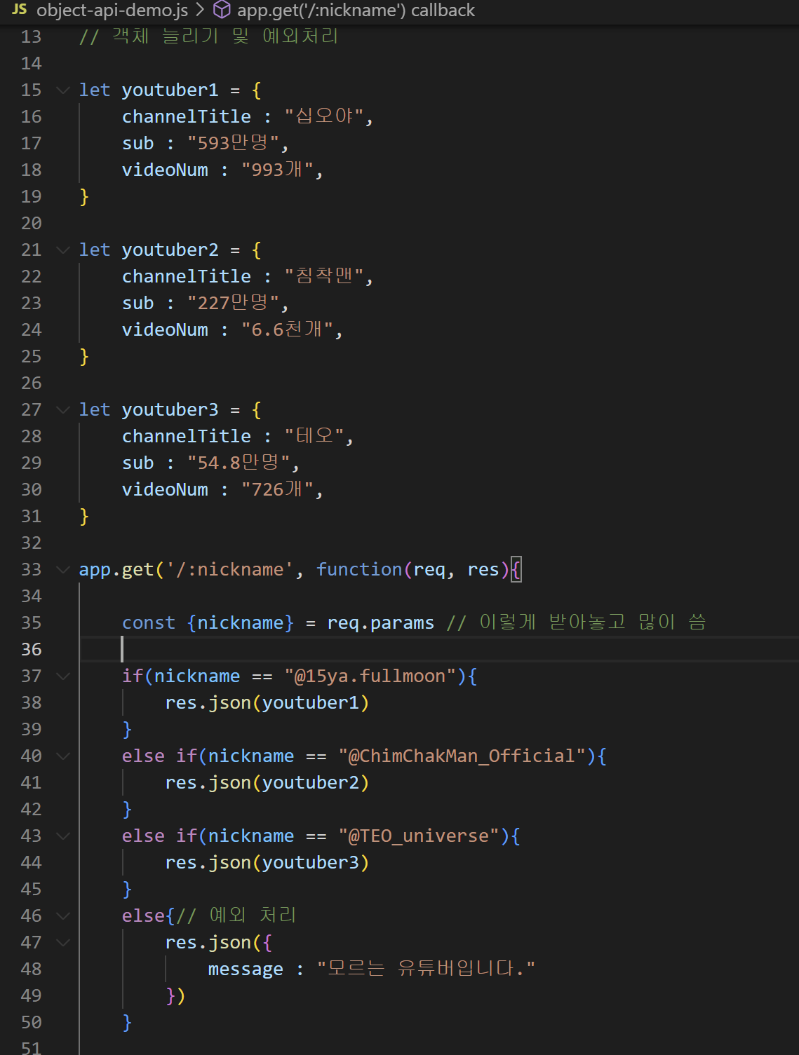 객체 비구조화 사용 및 모르는 유튜버(링크)일 경우 예외처리