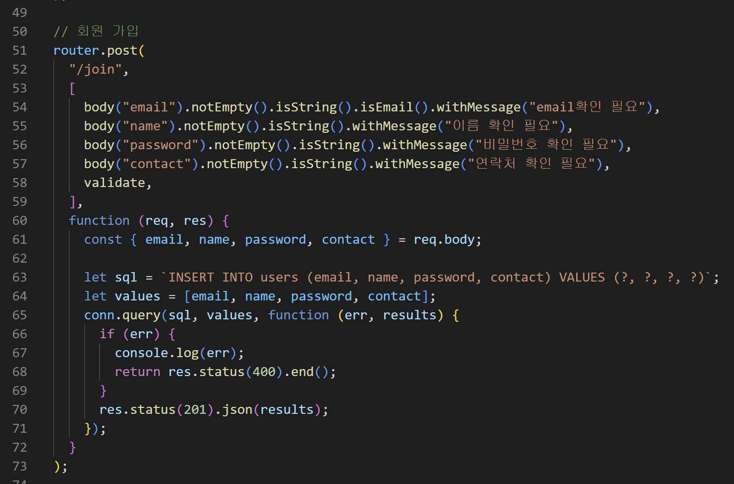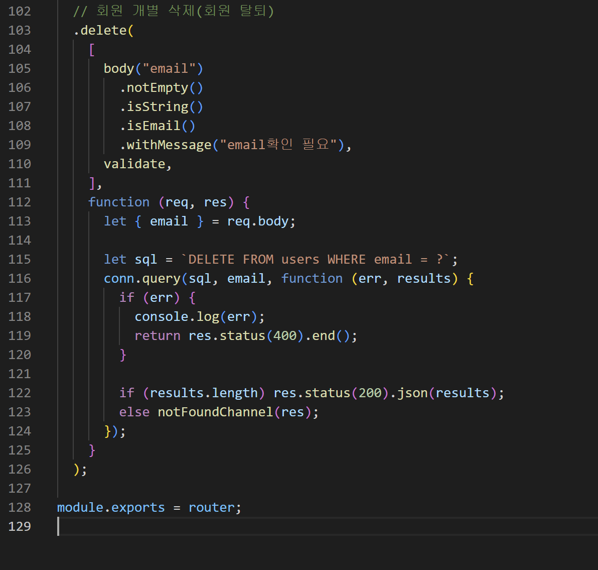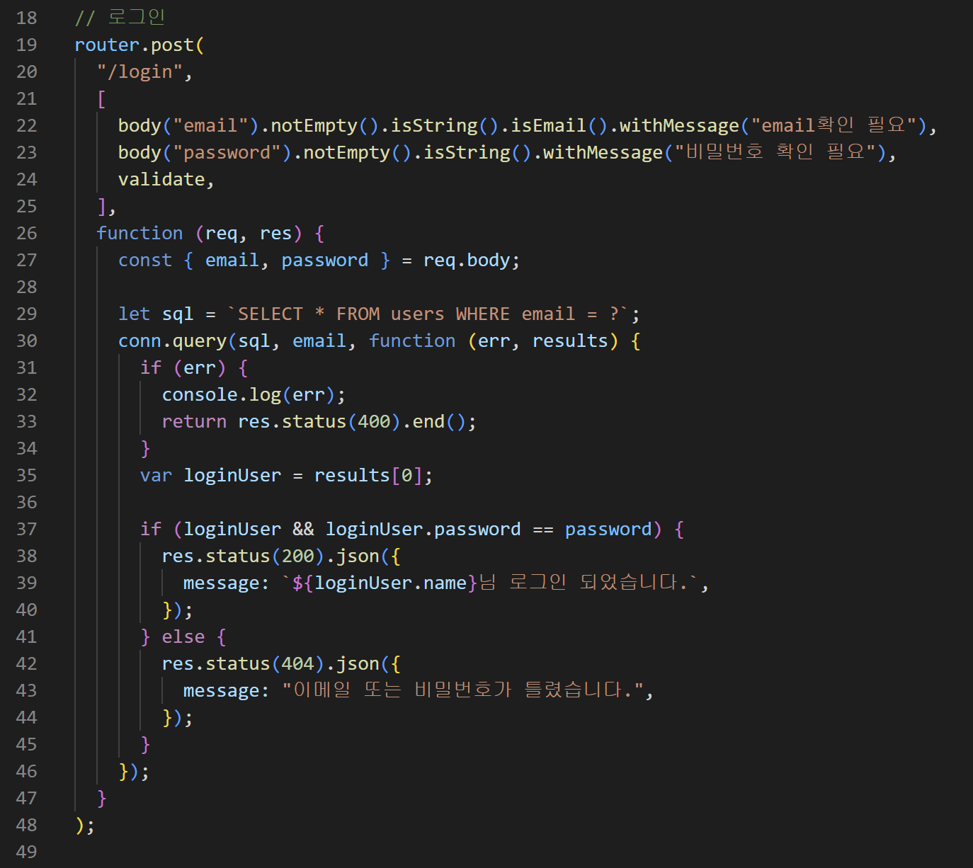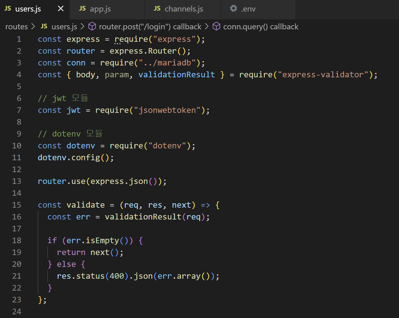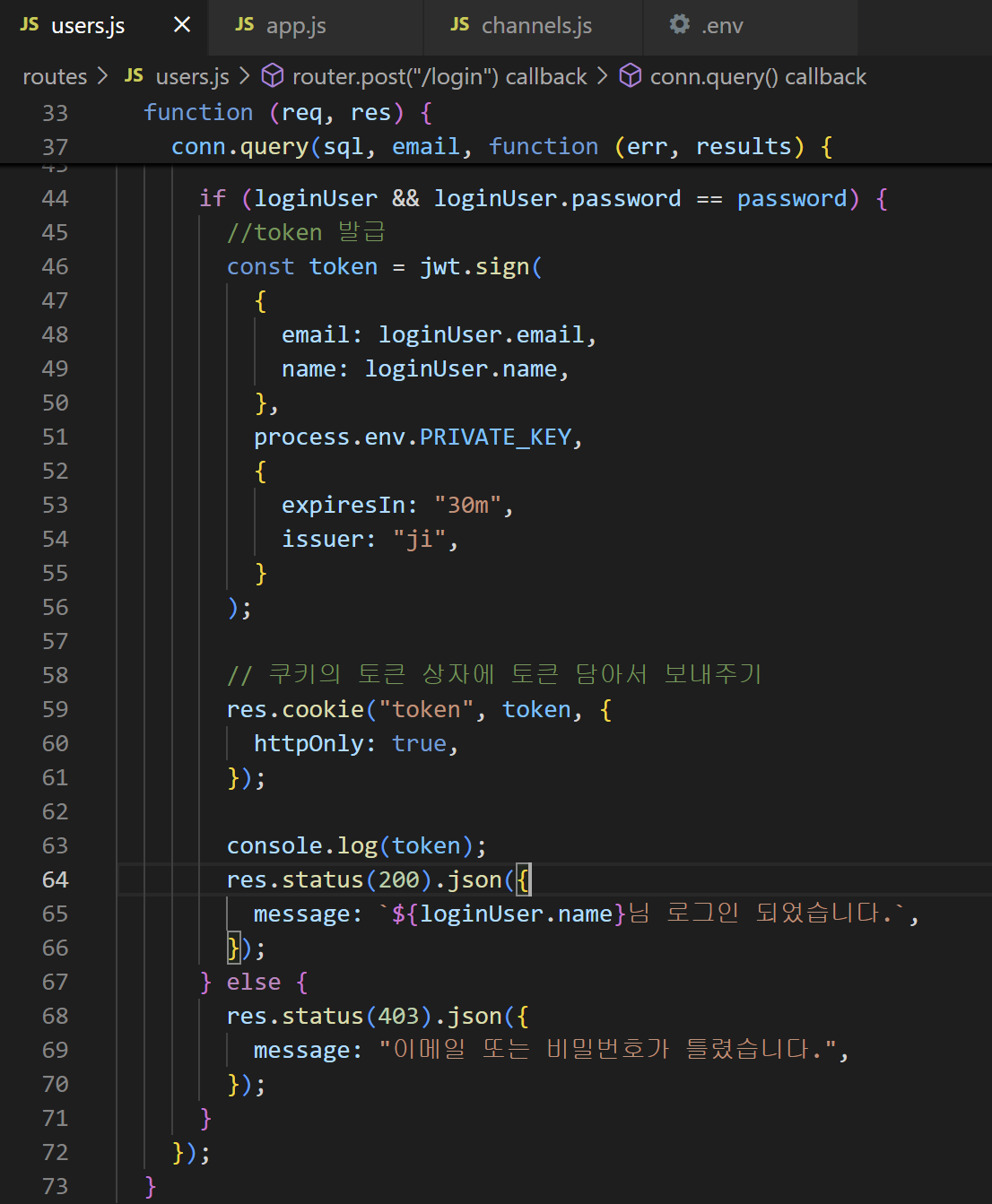 body값에서 보내는 res.json({token : "token";}); 줄 삭제,