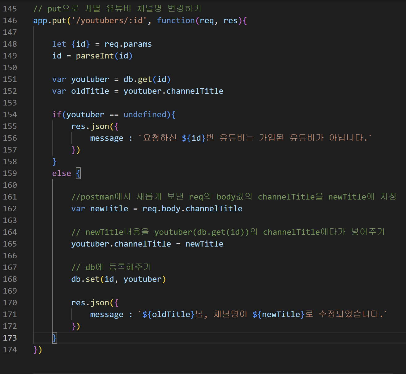 - 5) 개별 유튜버 "수정" => PUT/youtubers/:id