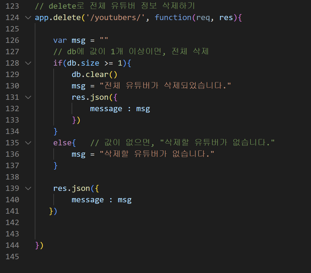 - 4) 전체 유튜버 "삭제" => DELETE/youtubers