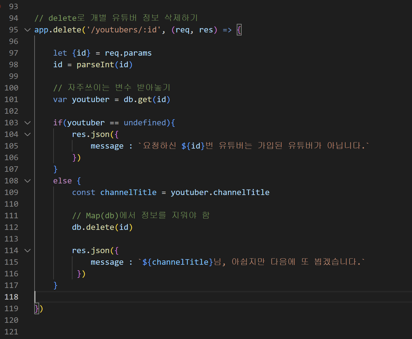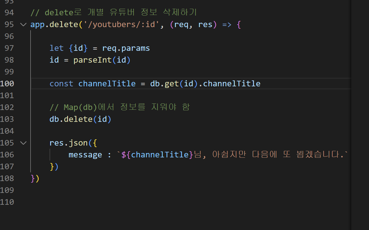 - 3) 개별 유튜버 "삭제" => DELETE/youtubers/:id