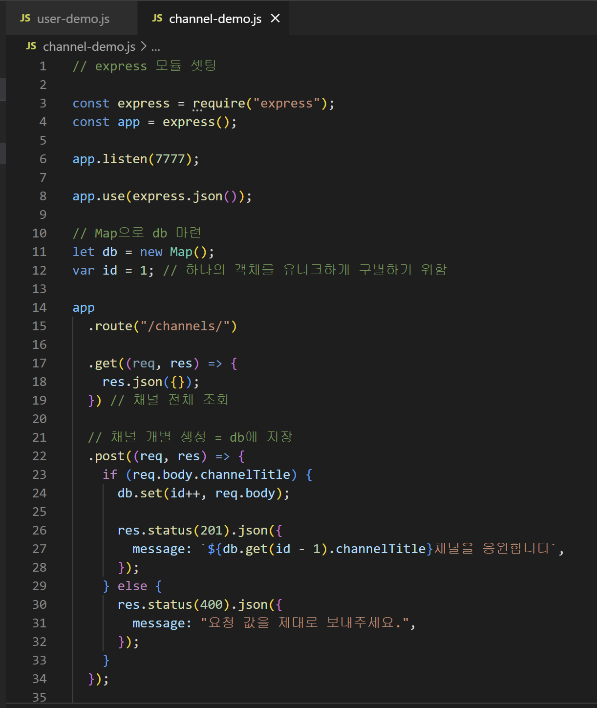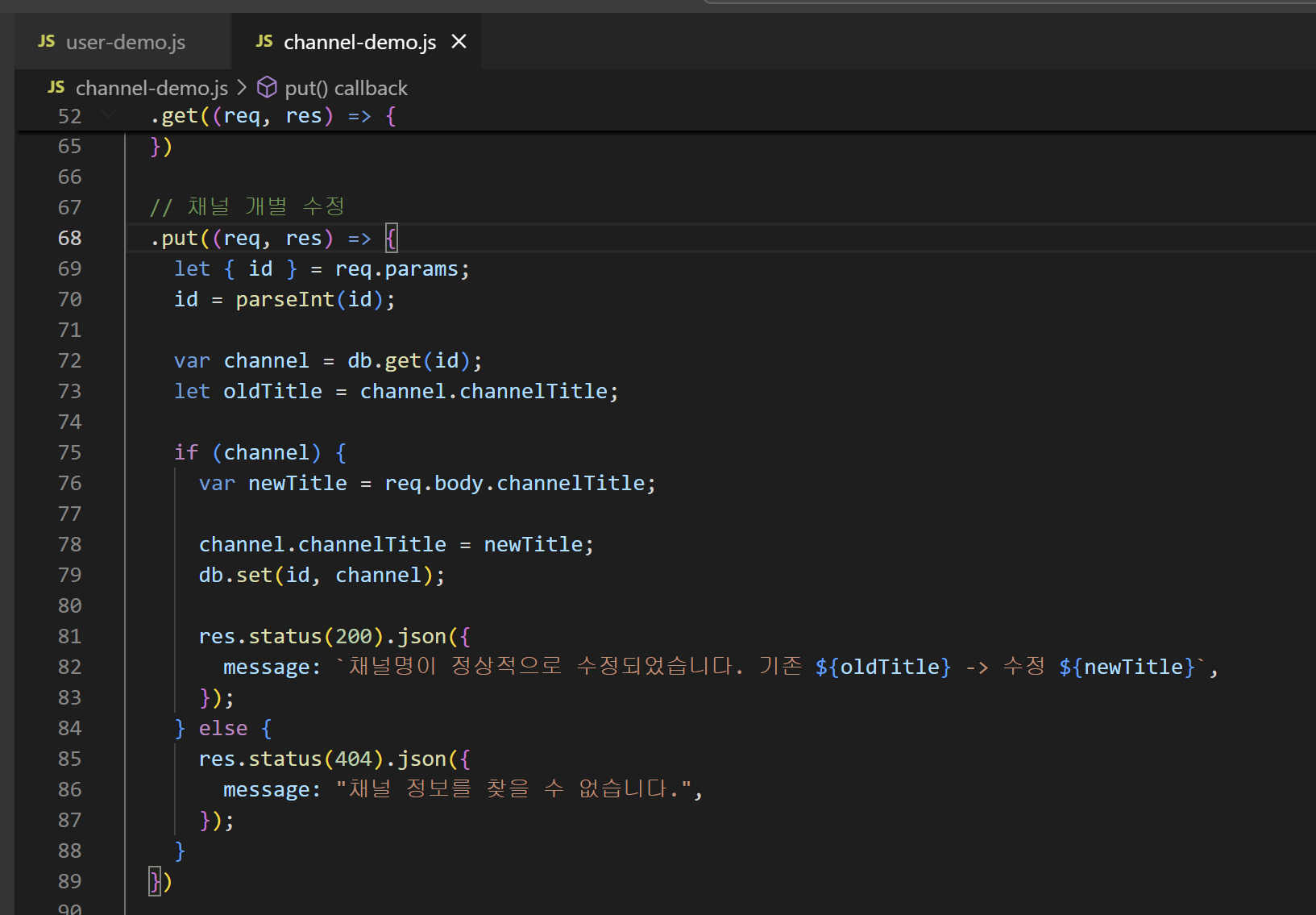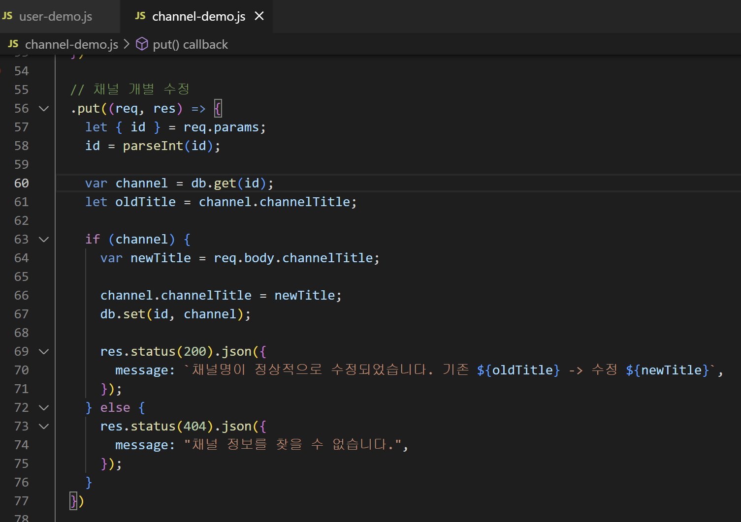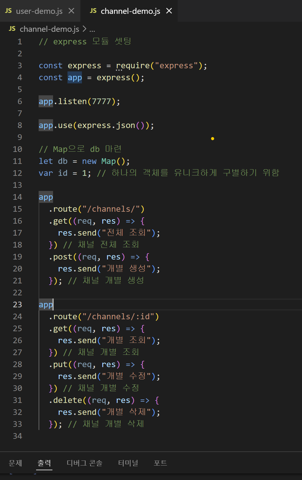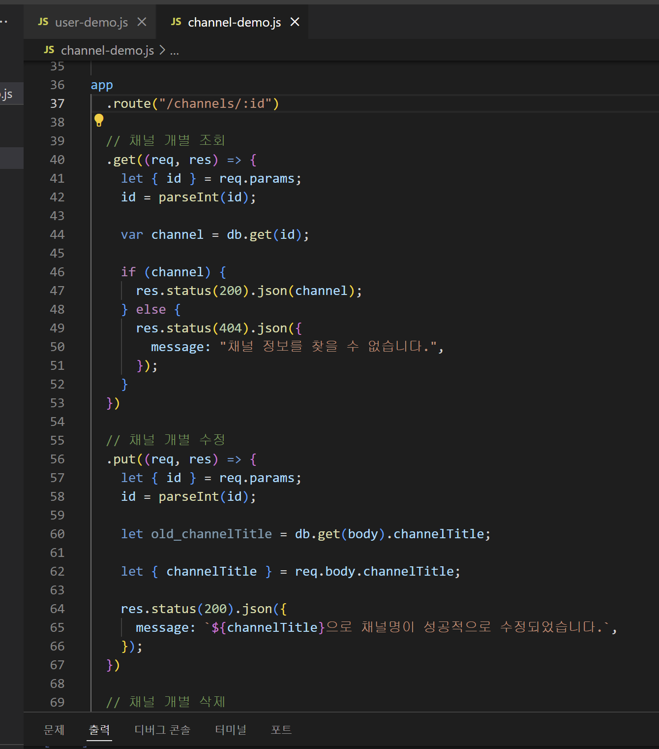 -> 다른 페이지 띄워주고 싶어.. ex. 채널 관리 페이지2) 채널 "수정" : PUT /channels/:id