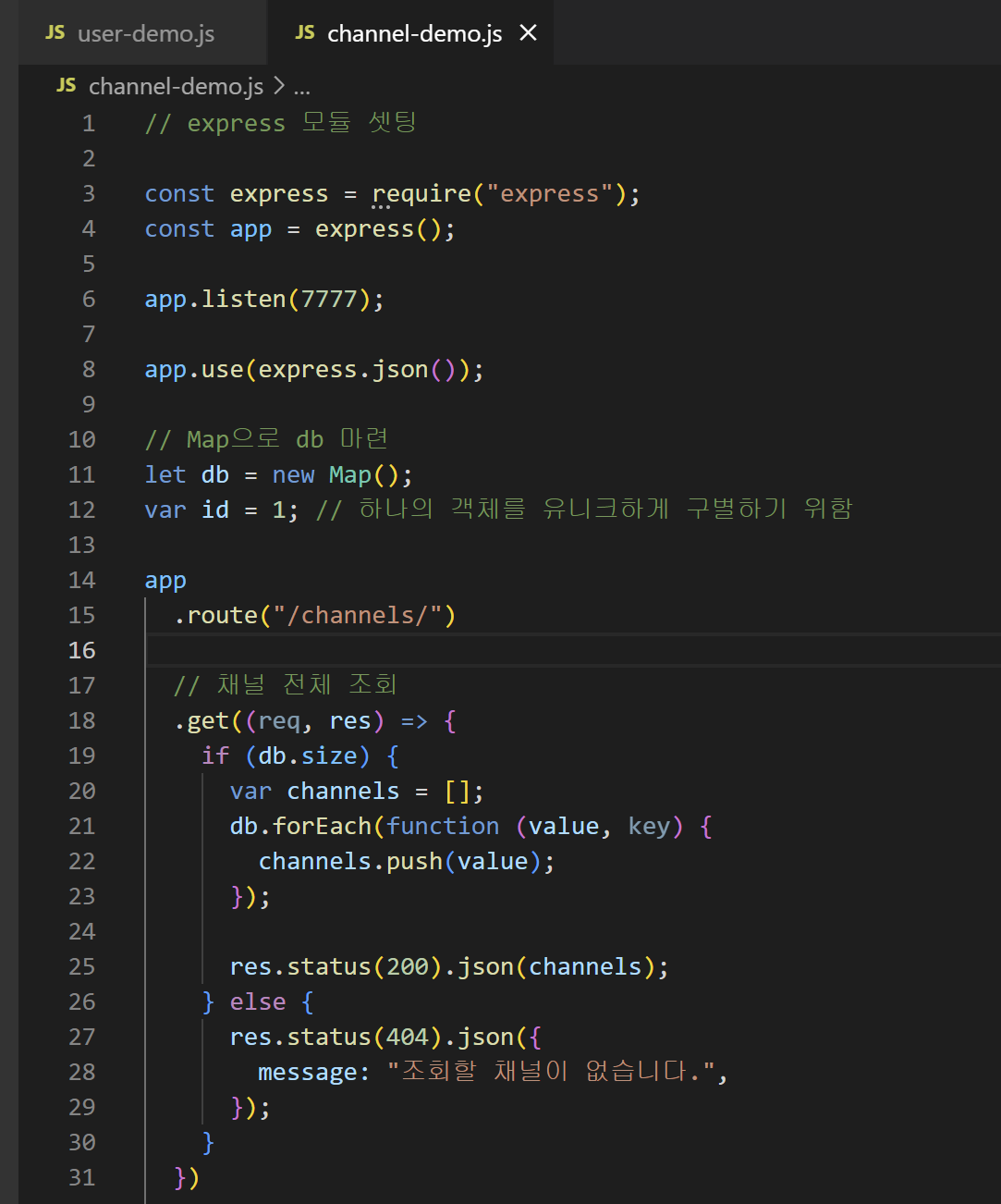 -> 메인 페이지로 가기4) 채널 전체 "조회" : GET /channels