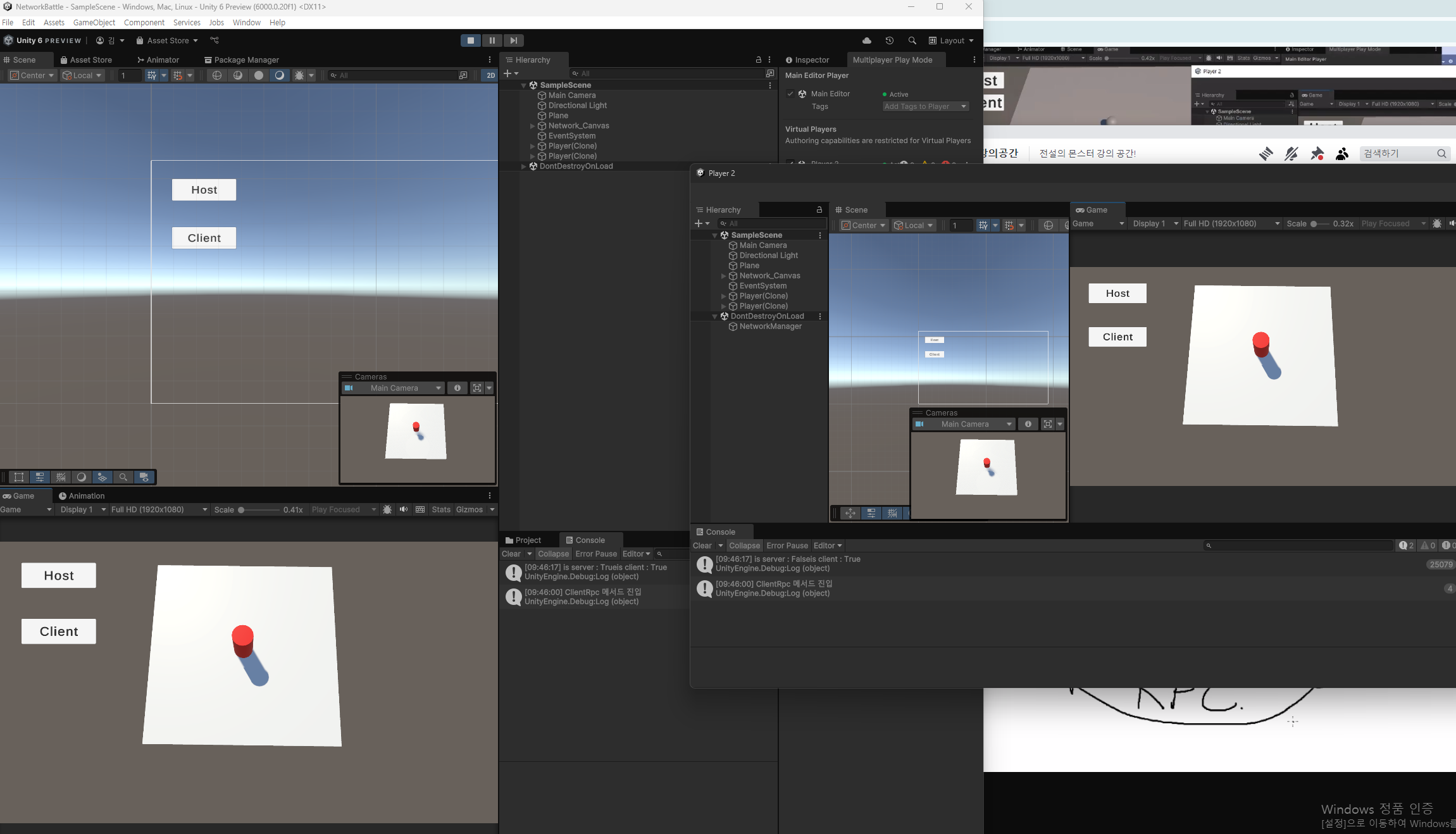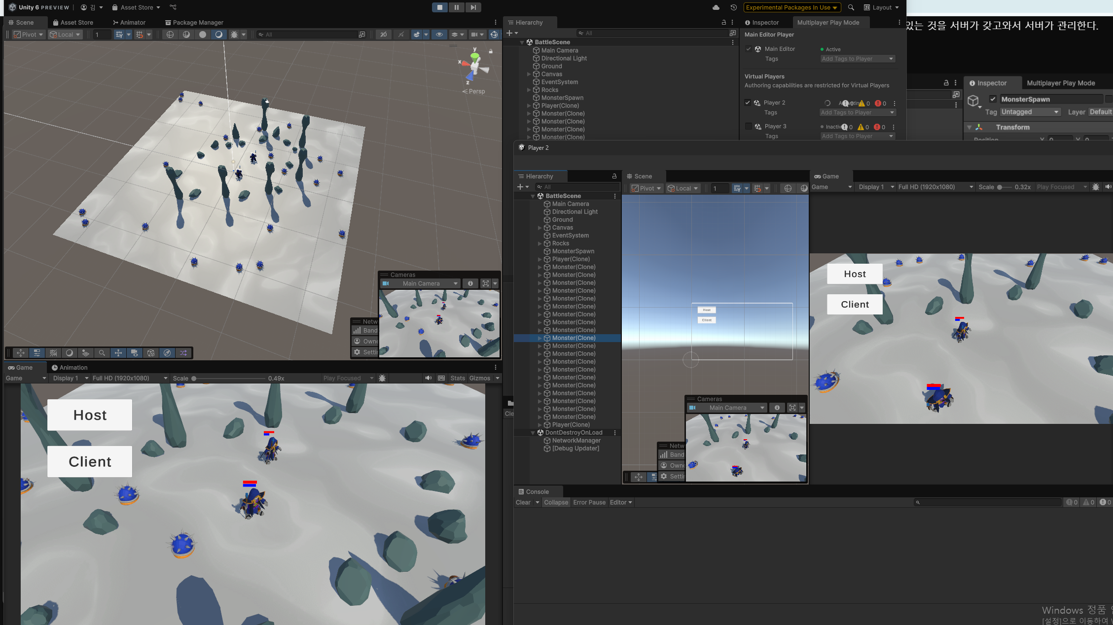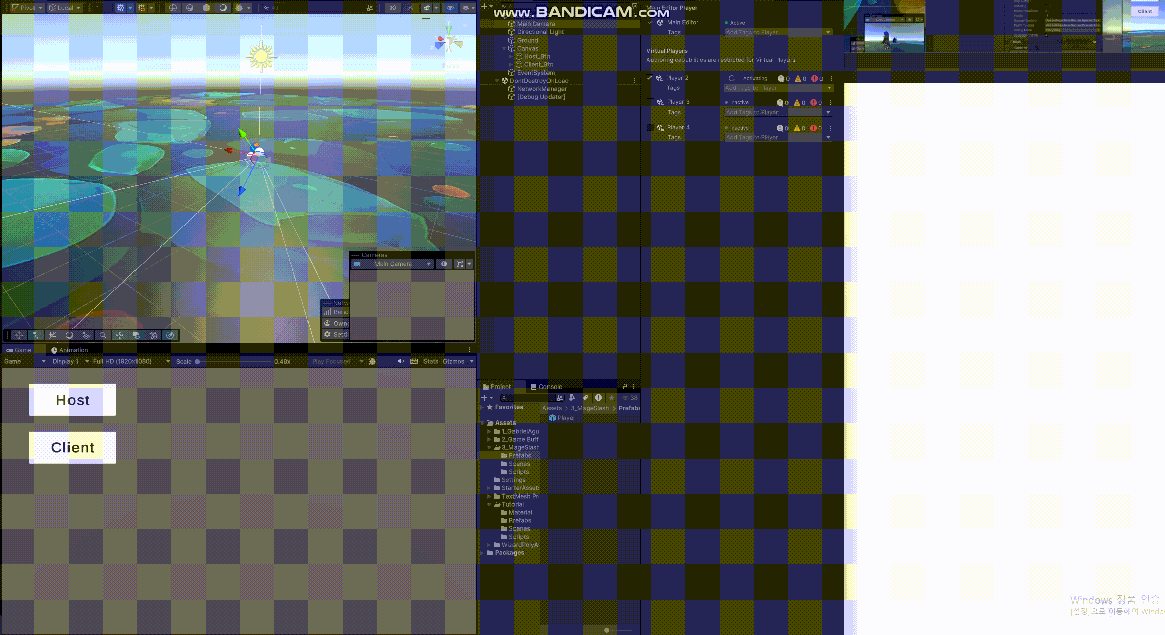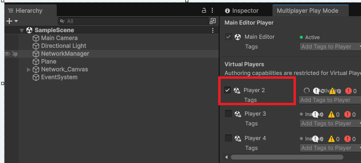 5 - 1. Multi Play Mode에서 Player2 를 활성화 한다. -> 싱크 맞추는 용도(매우 중요함)