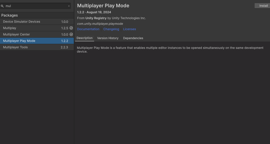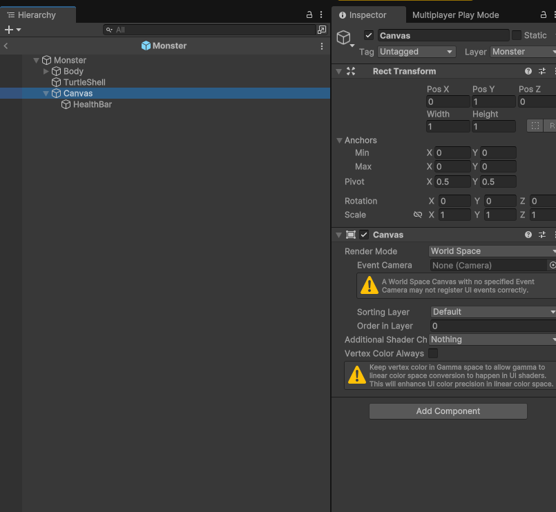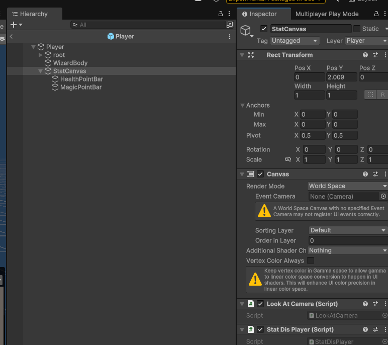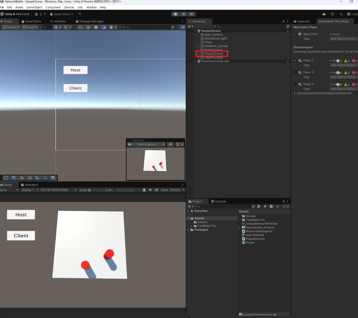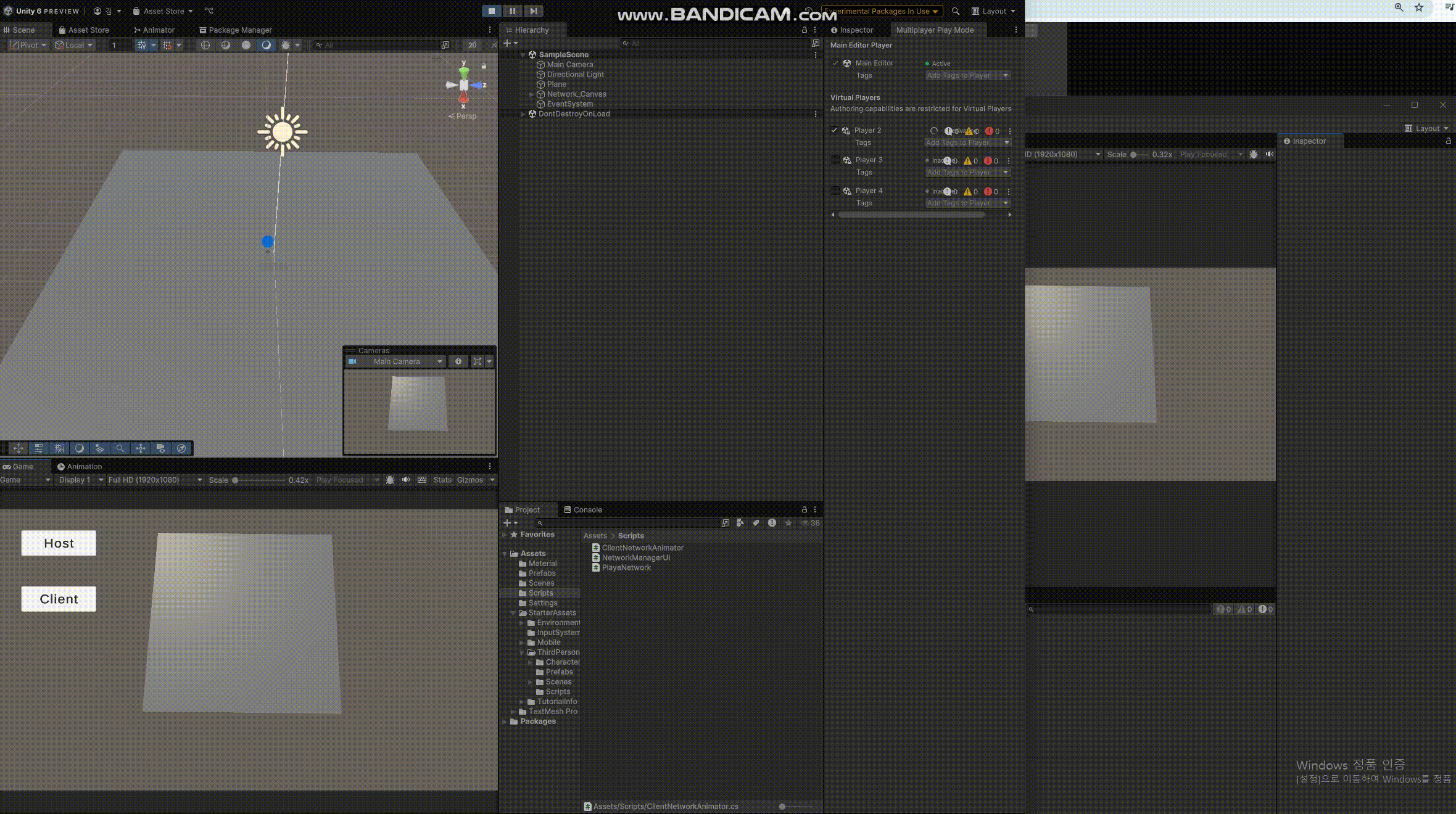 5 - 1. Multi Play Mode에서 Player2 를 활성화 한다. -> 싱크 맞추는 용도(매우 중요함)