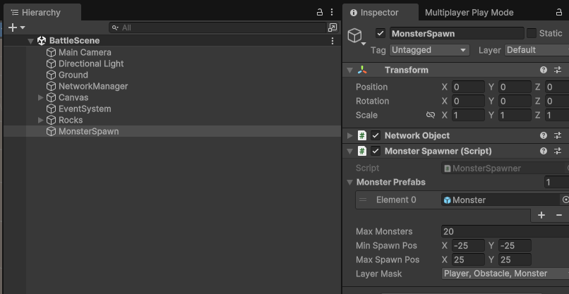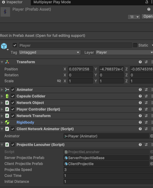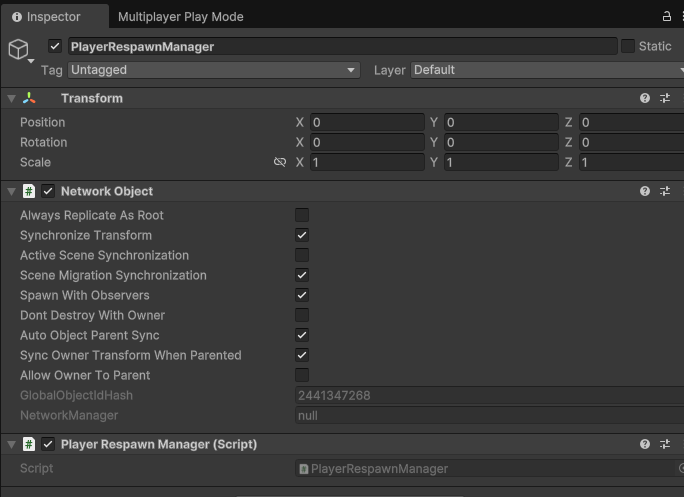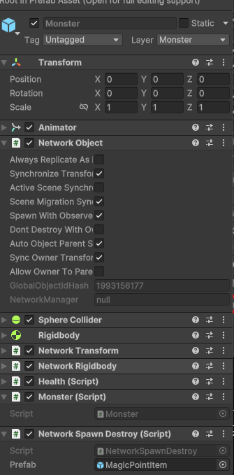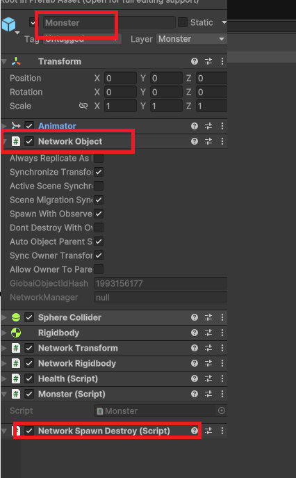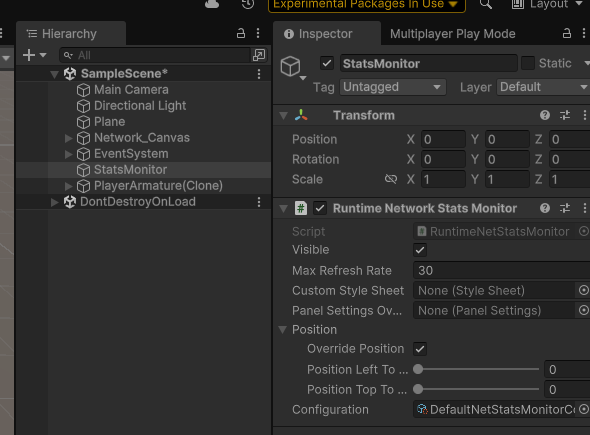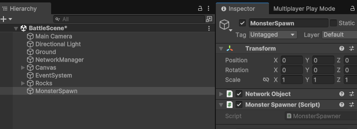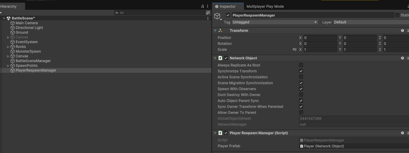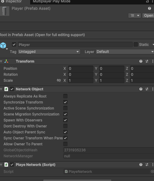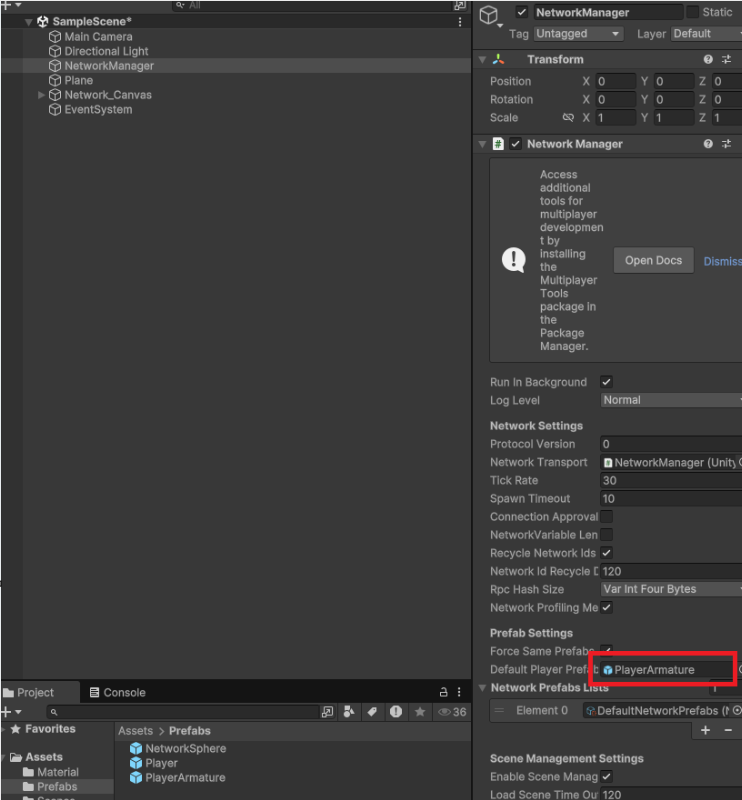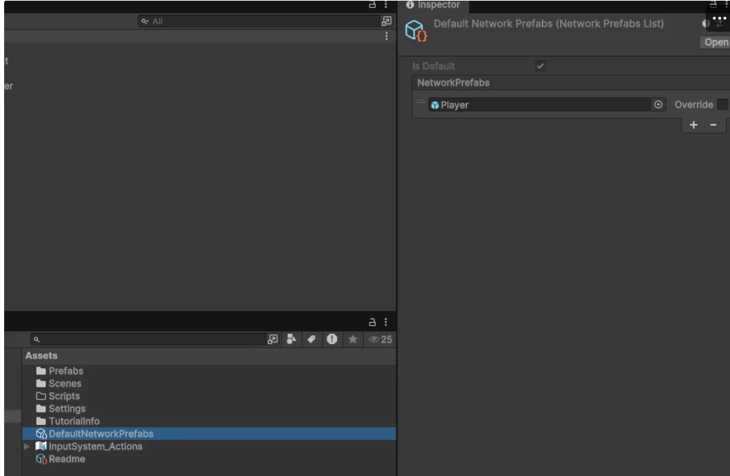 DefaultNetworkPrefabs에 네트워크에 존재하는 애들을 미리정의해야함