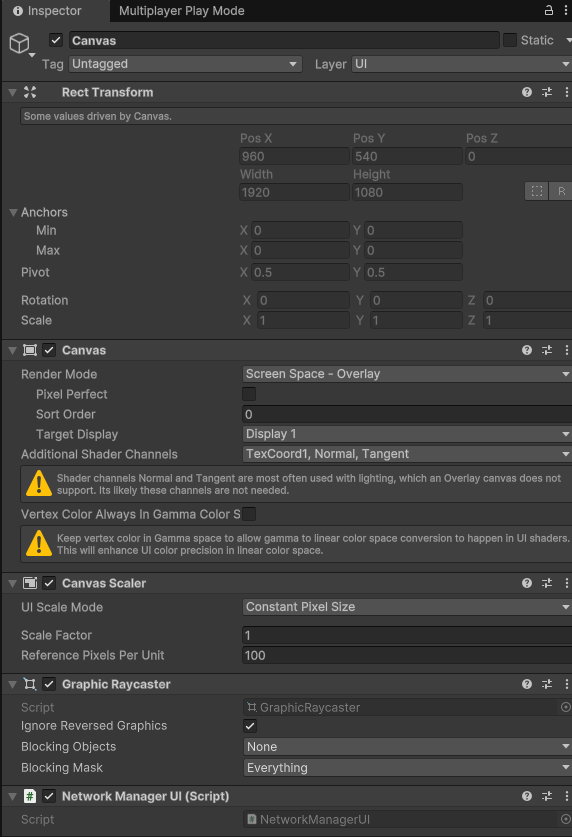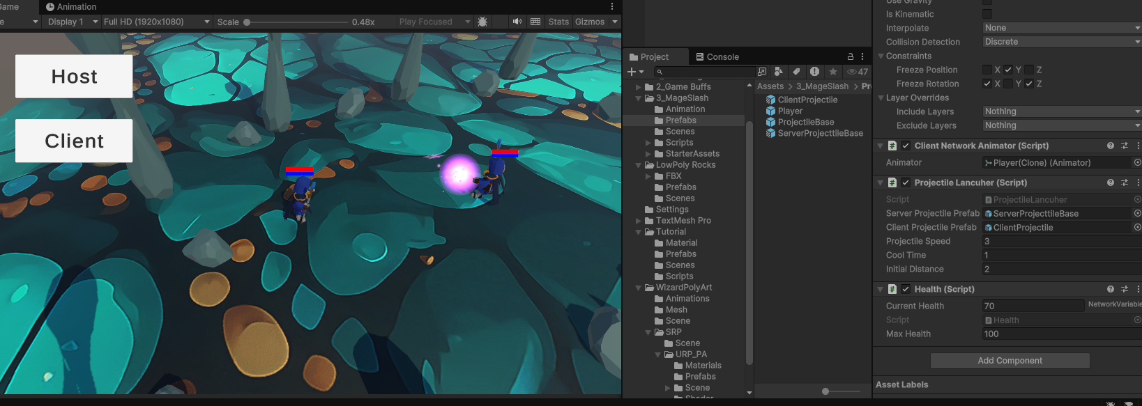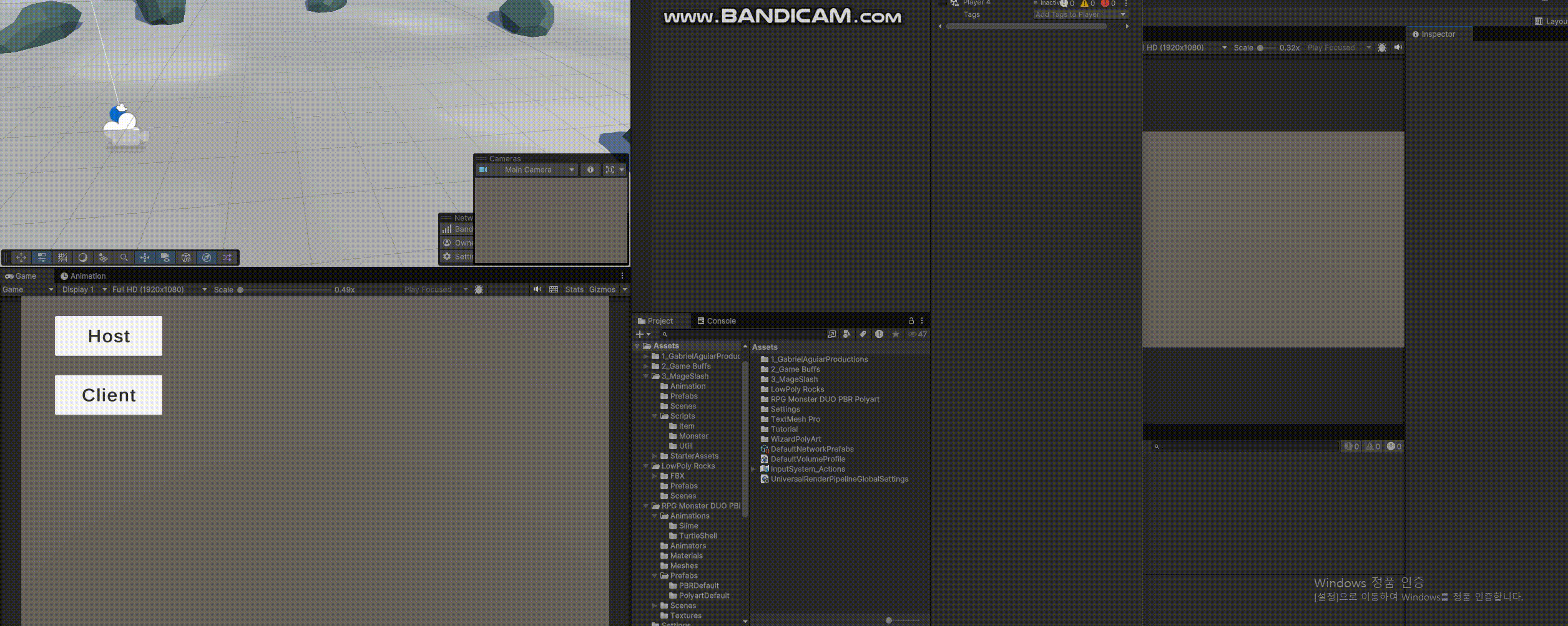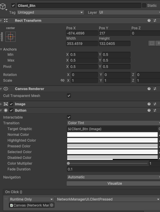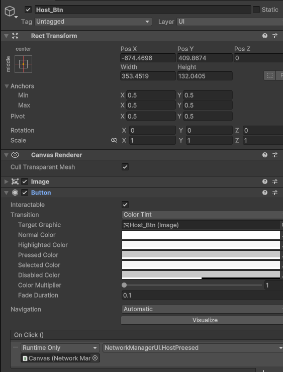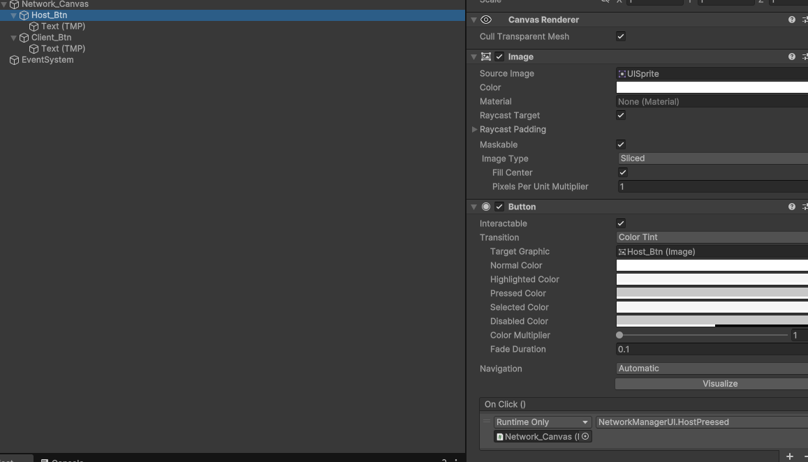 이전에, 수동으로 NetworkManager에서 StartHost, StartClient을 직접 클릭하였는데, 그것이 아닌 버튼 이벤트를 통해 host와 Client를 나눴다.