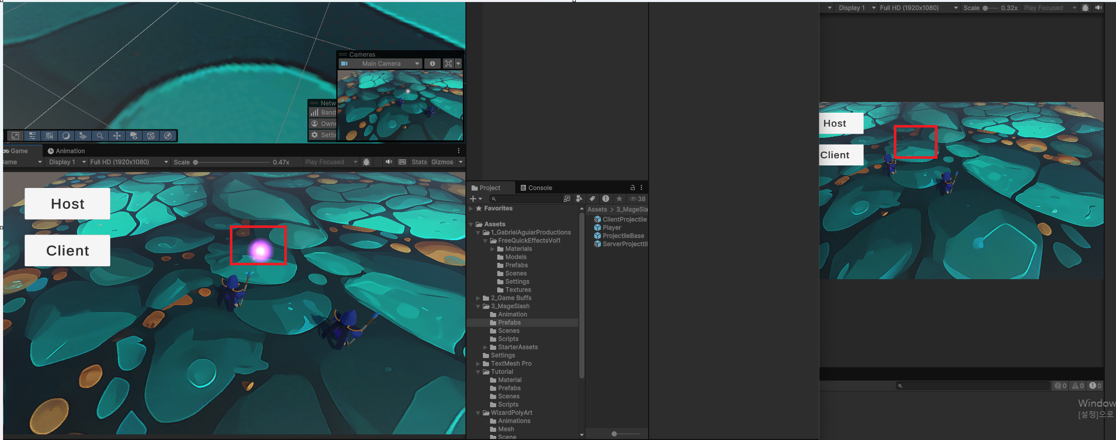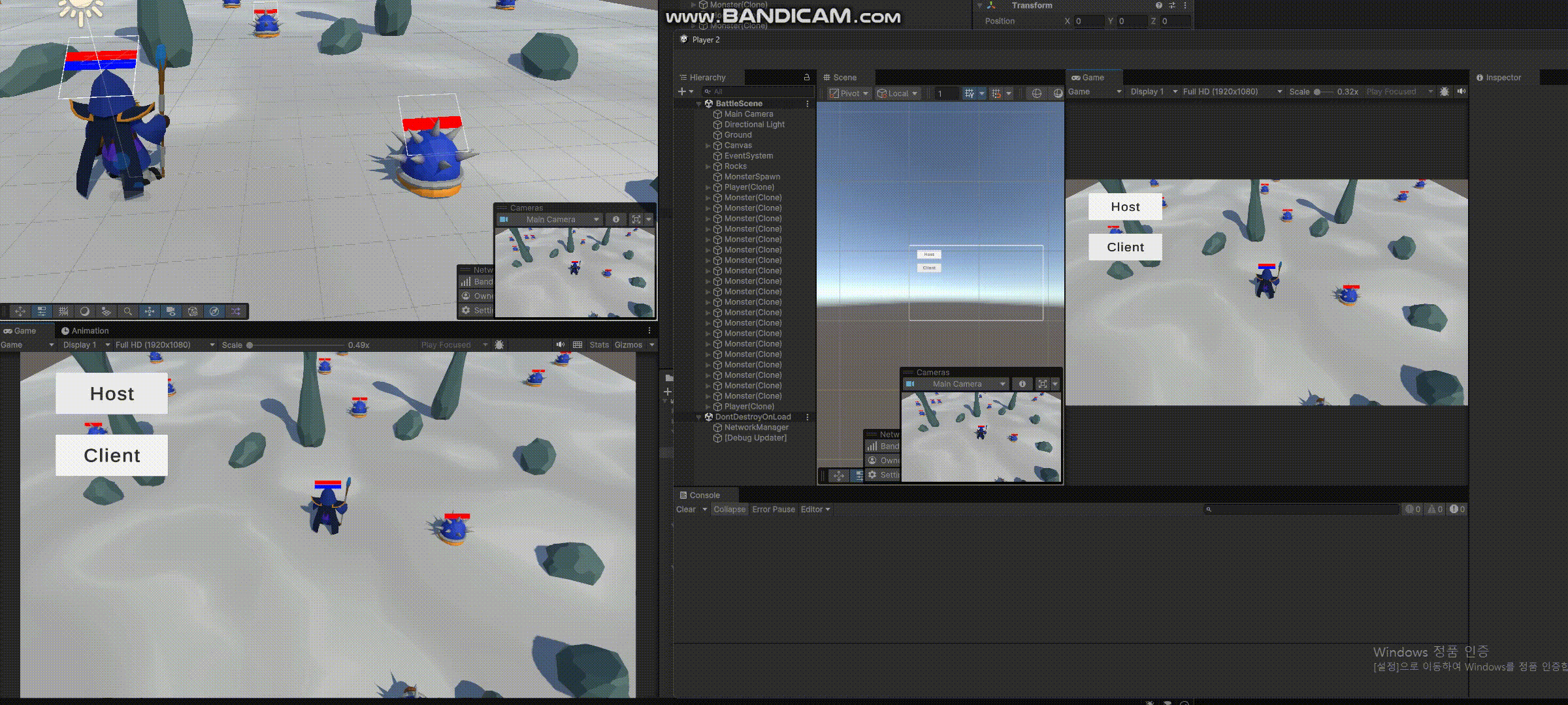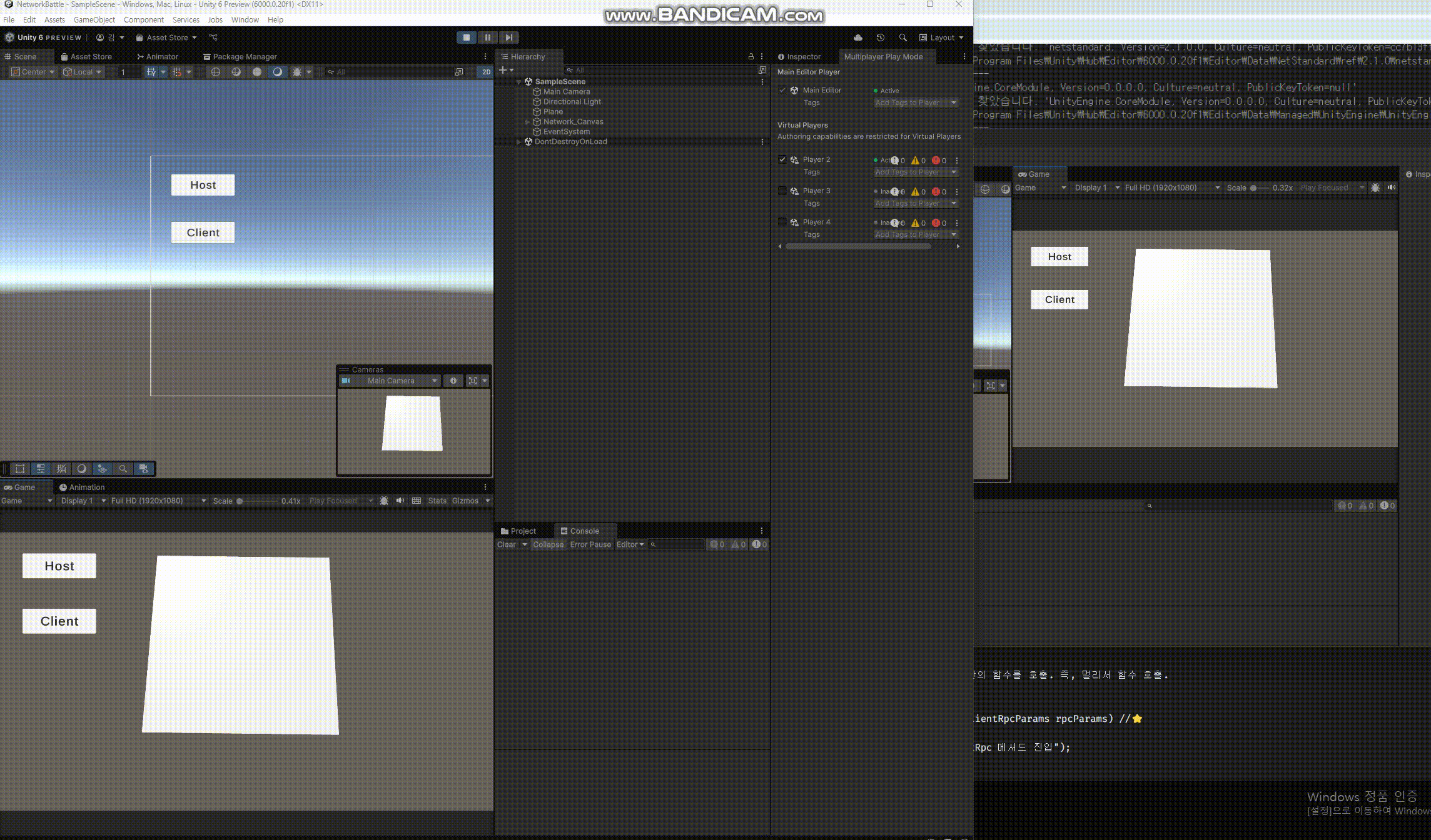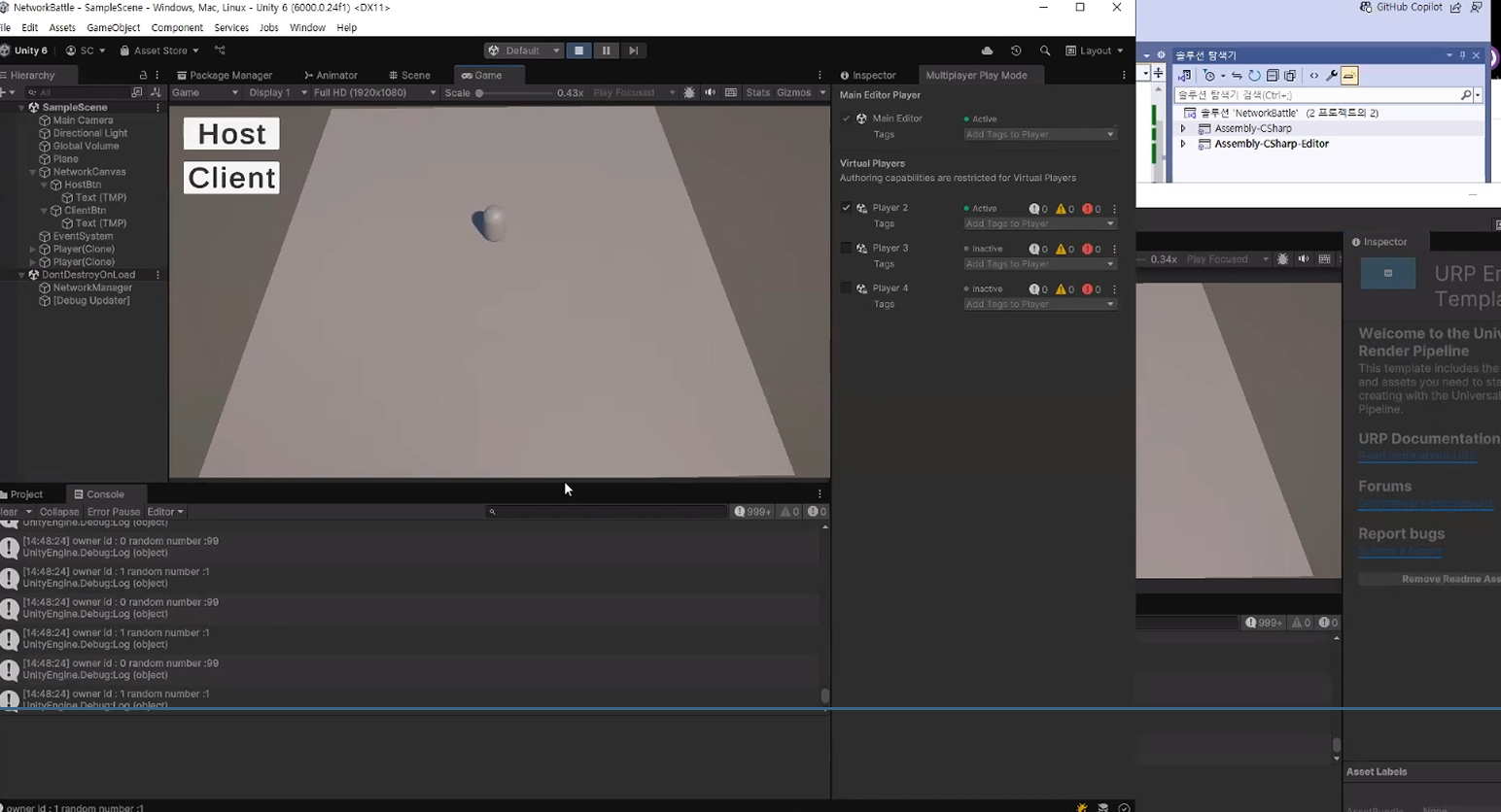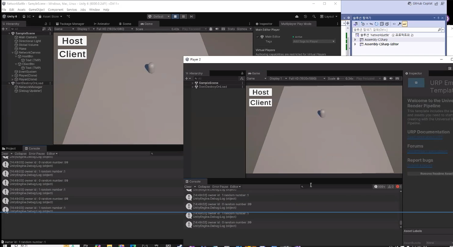 위 사진은 Host에서 T를 누른 상태인데, Host의 randomNumber가 99로 바뀌었다. Client의 randomNumber는 그대로 1이다. 왜냐하면 Host에서 T를 눌렀기 때문