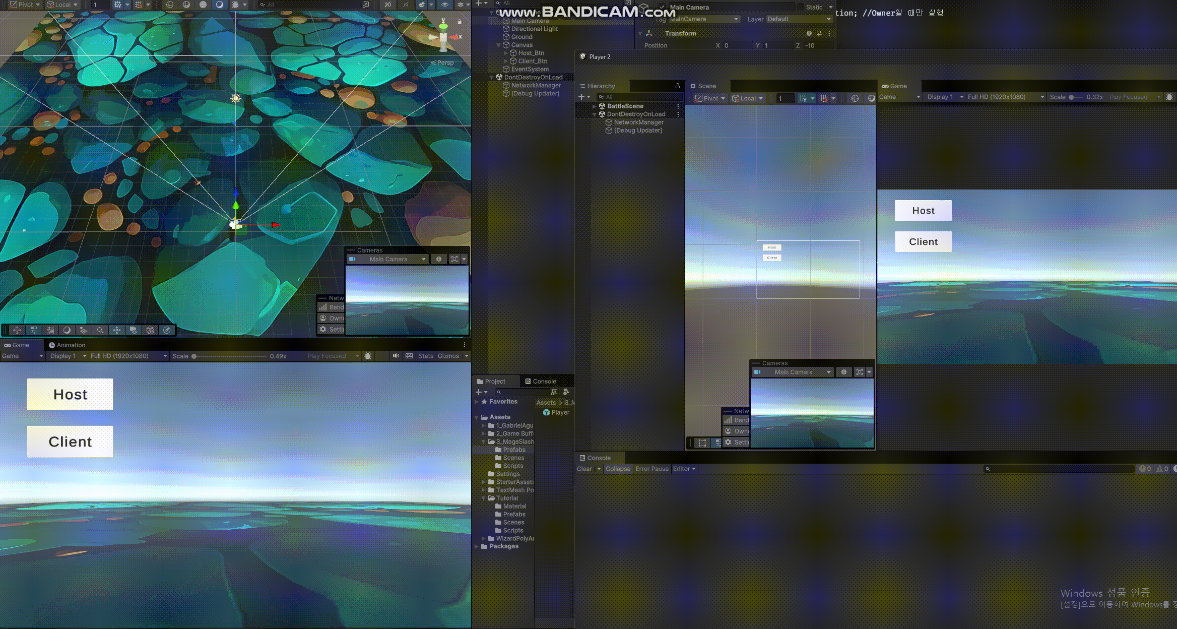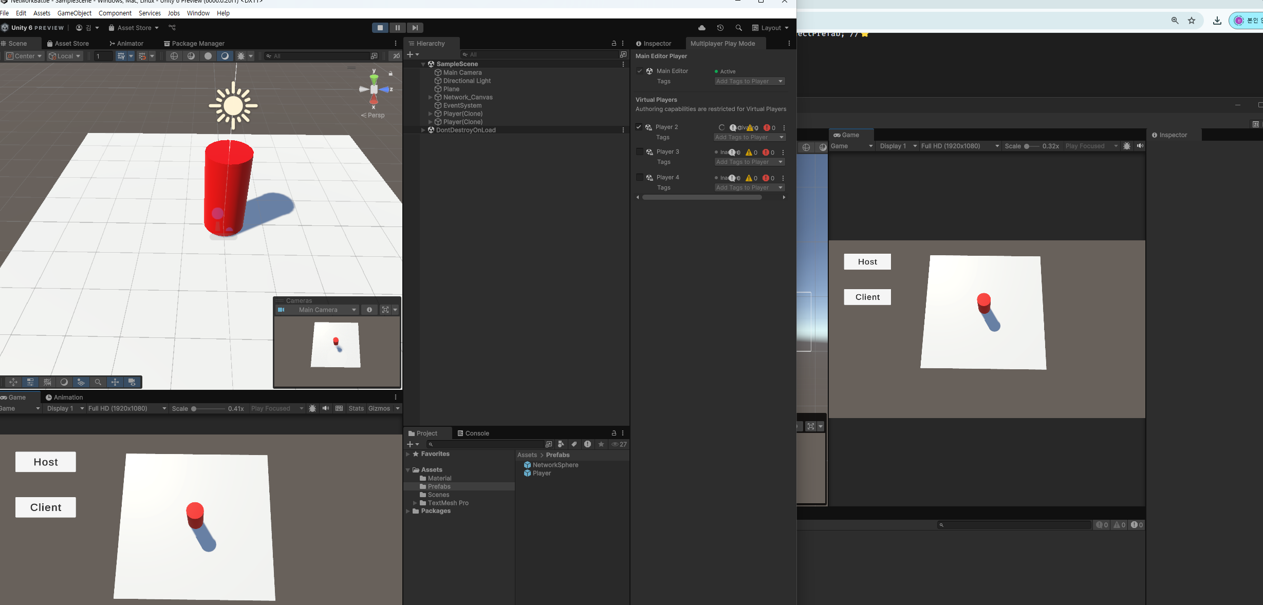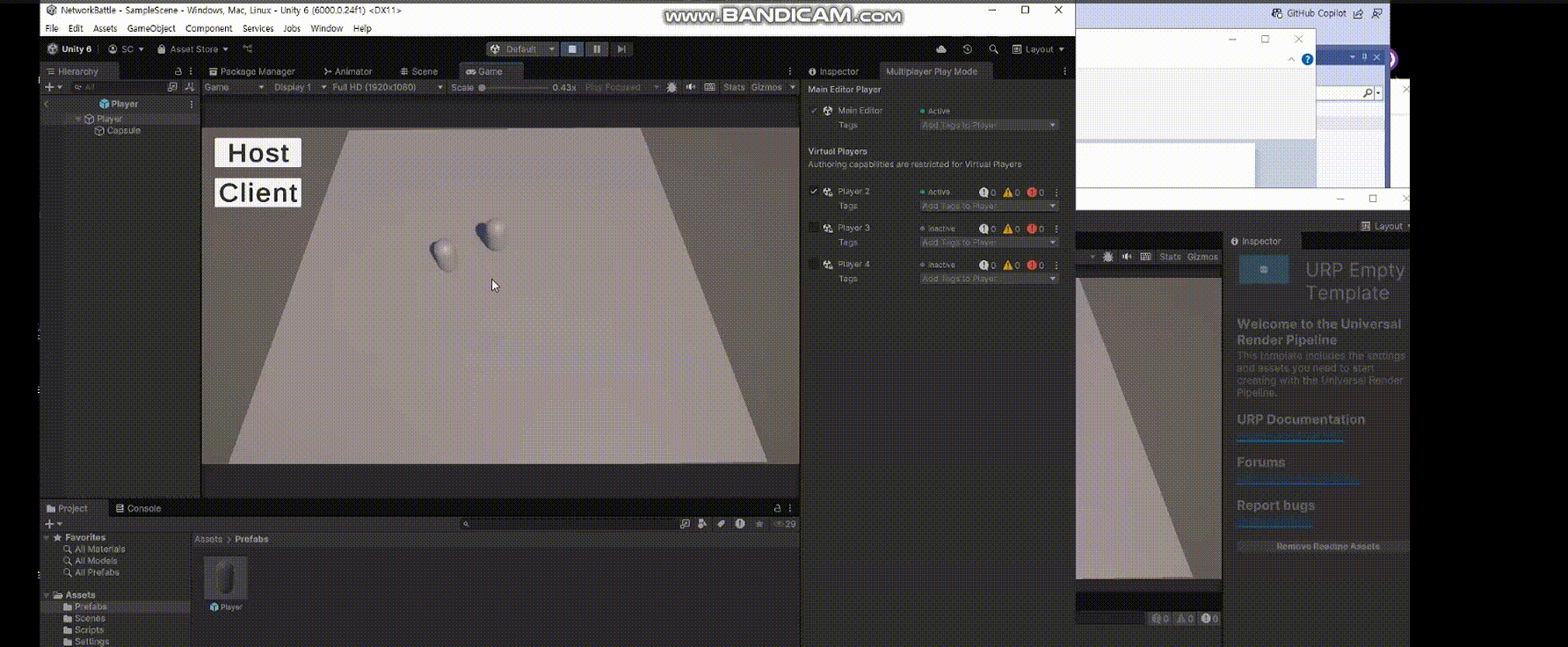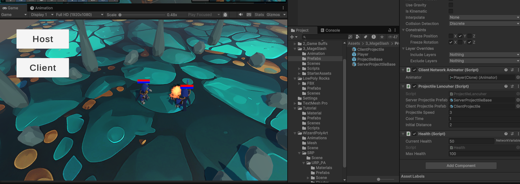 위 사진은 Host에서 T를 누른 상태인데, Host의 randomNumber가 99로 바뀌었다. Client의 randomNumber는 그대로 1이다. 왜냐하면 Host에서 T를 눌렀기 때문