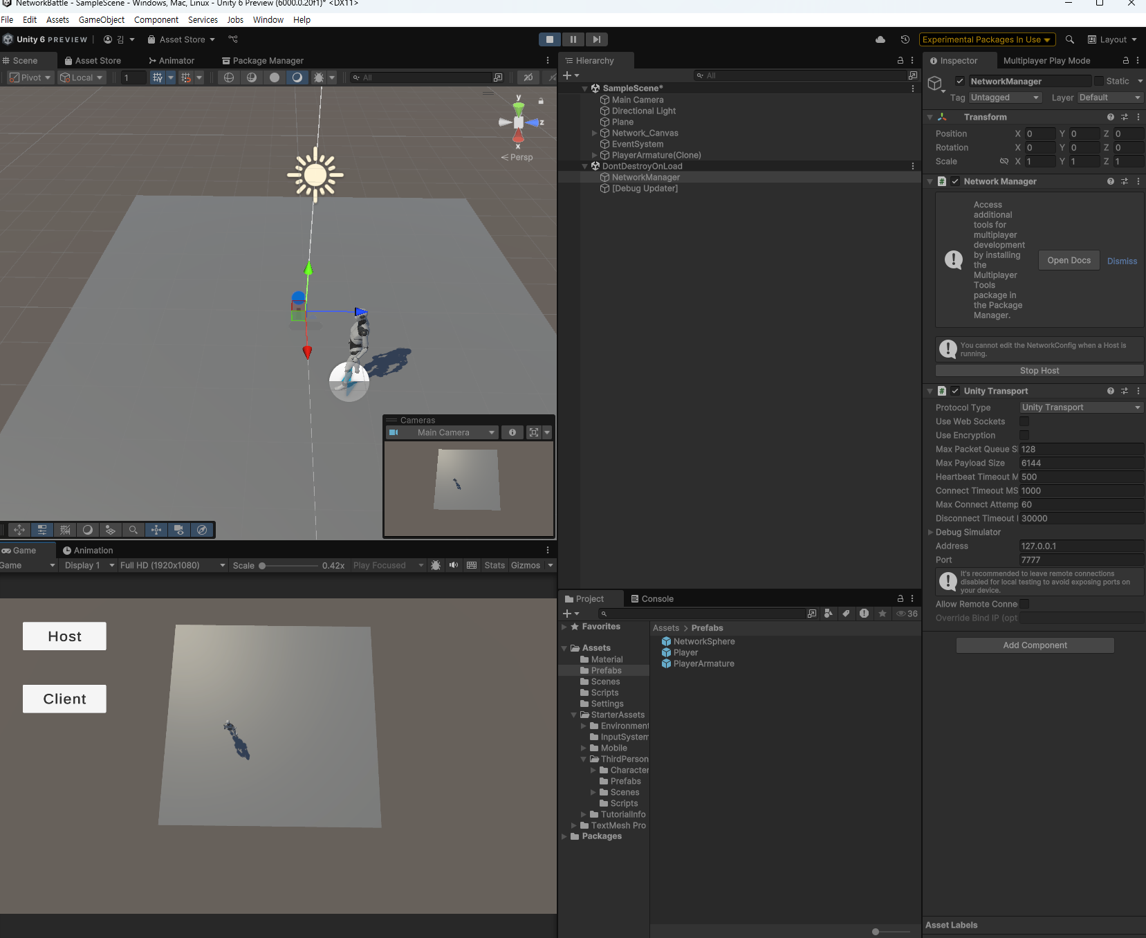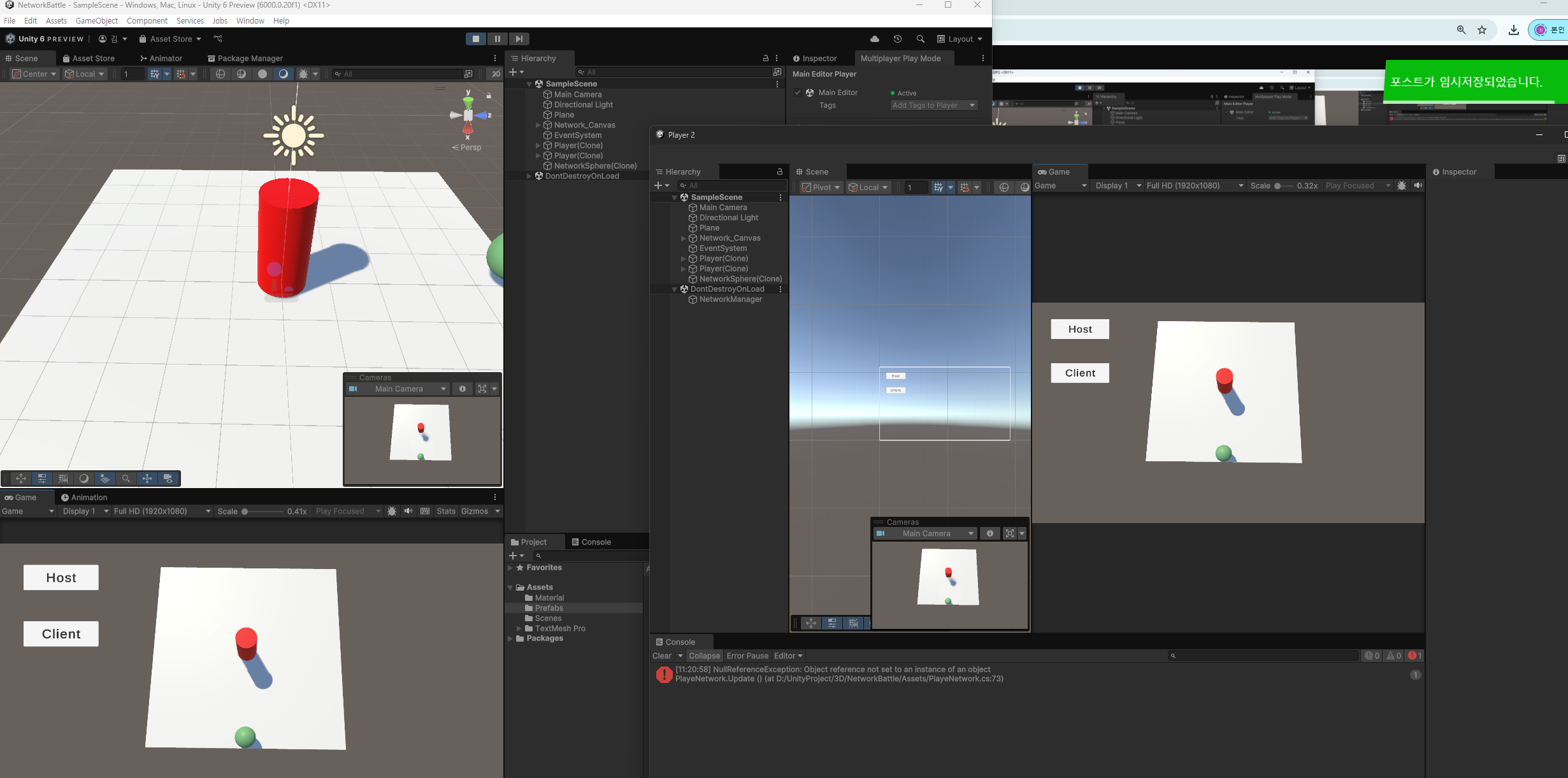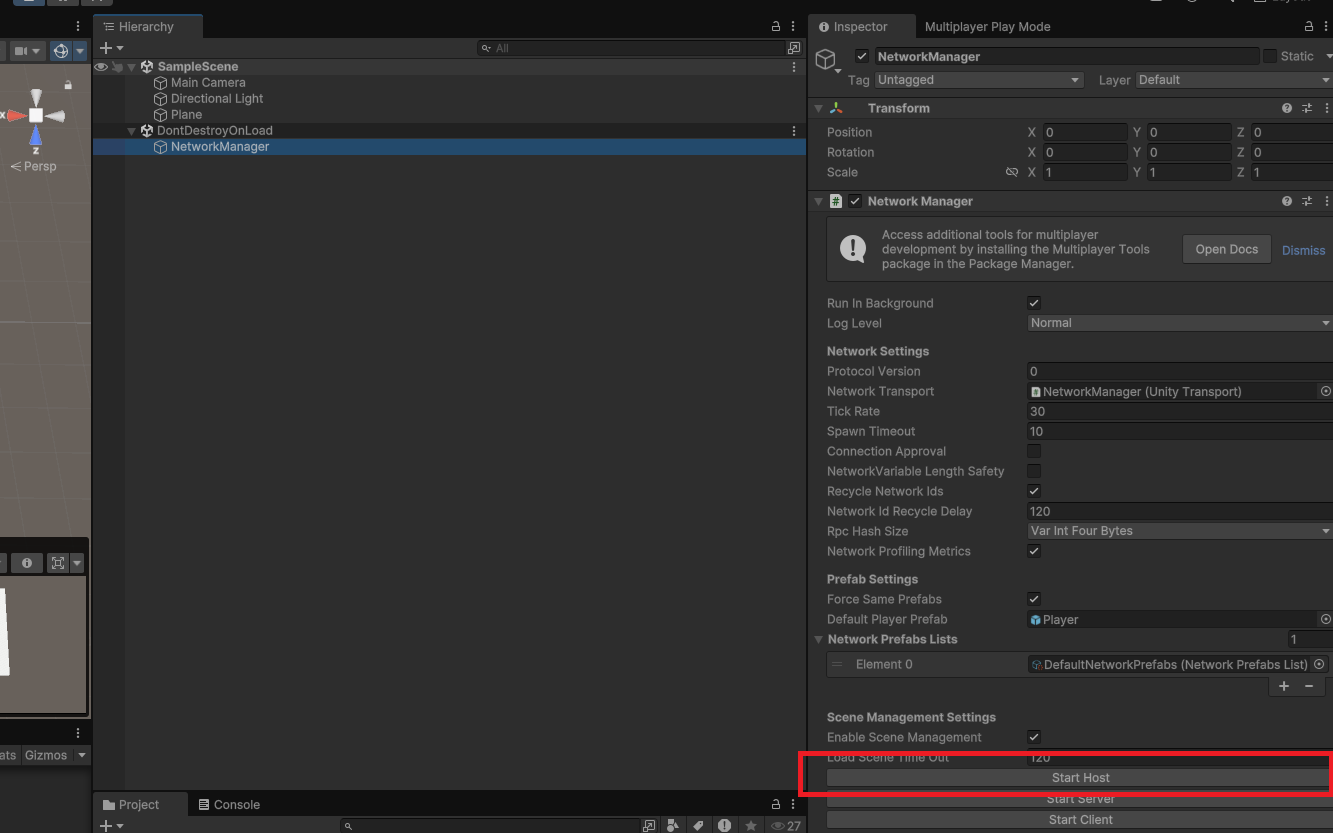 5 - 2. 디버그 중에 NetworkManager를 StartHost 버튼을 누른다.