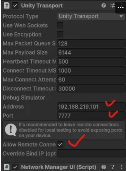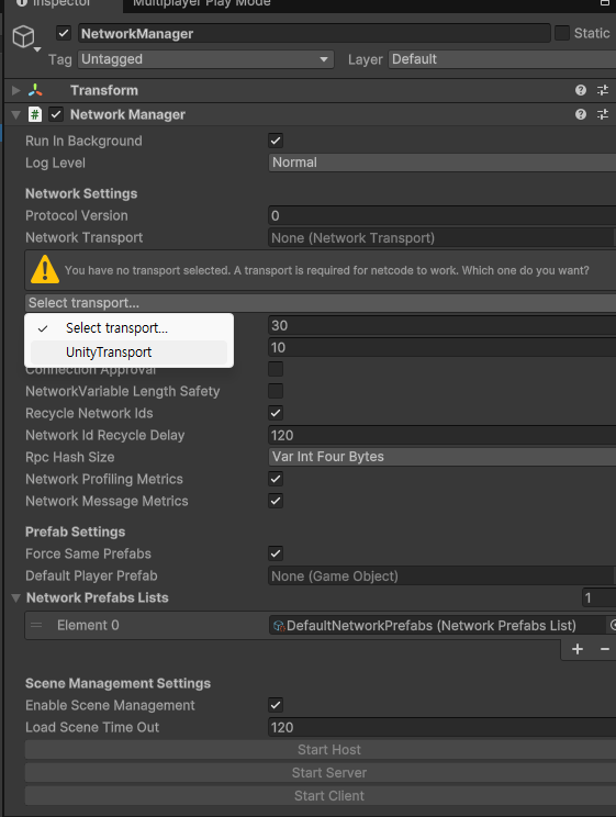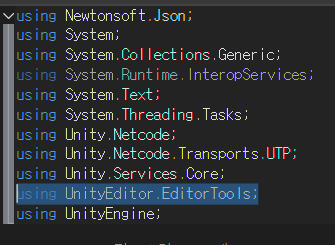 UnityTransport transport = NetworkManager.Singleton.GetComponent<UnityTransport>(); //⭐ 추가