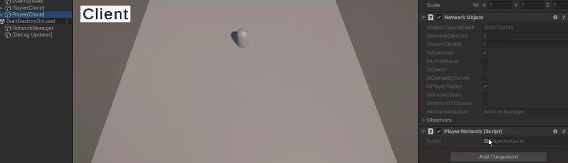 두 개의 플레이어 중에서 Owner만 NetworkVariable을 변형시킨 것이다. 그러는 것이 아닌 위에 디버그 로그를 찍는다.