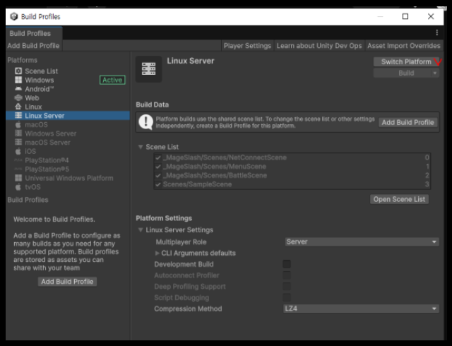 // await LaunchInMode(SystemInfo.graphicsDeviceType == UnityEngine.Rendering.GraphicsDeviceType.Null); //널이면 데드케이트 서버임.