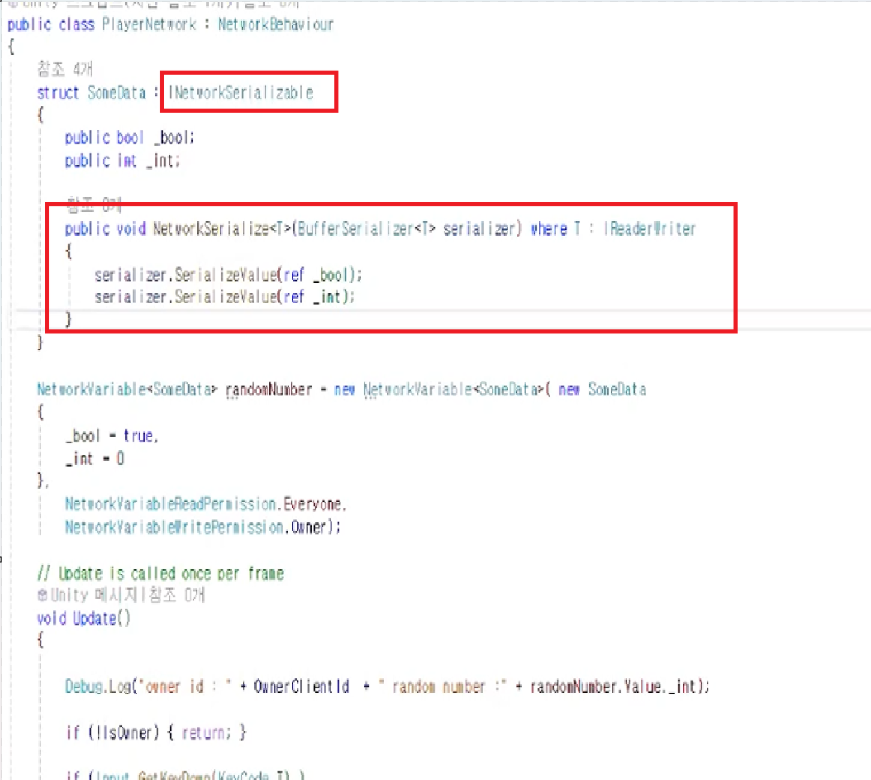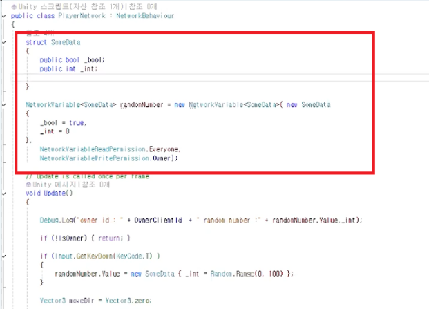 NetworkVariable : 이 변수는 네트워크 전체가 변수 하나이다. 모든 네트워크가 randomNumber 변수의 값이 같게 세팅이 된다.