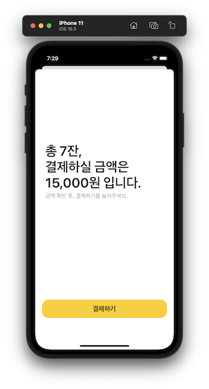 [ 메뉴 수량을 체크하고 '주문하기' 버튼을 누르면 몇 잔인지와 총 금액이 나오는 앱 ]