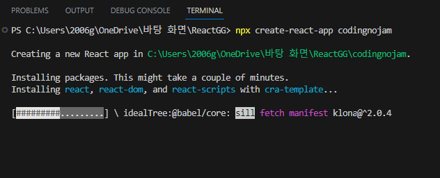 ex) npx create-react-app codingnojam