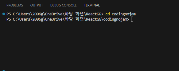 저는 codingnojam 으로 만들었으닌깐 cd codingnojam 칩니다.