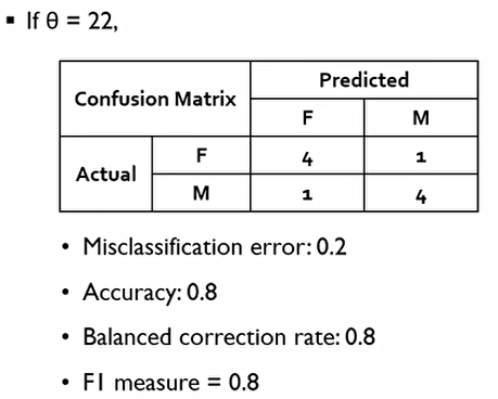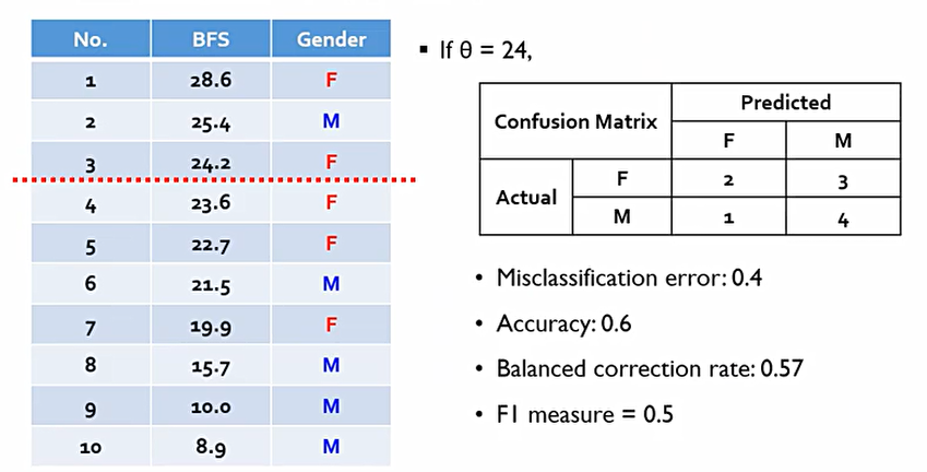 이때 이상적인 Ideal classificer는 다음과 같다. 이 경우에는 cut-off가 20일 때.
