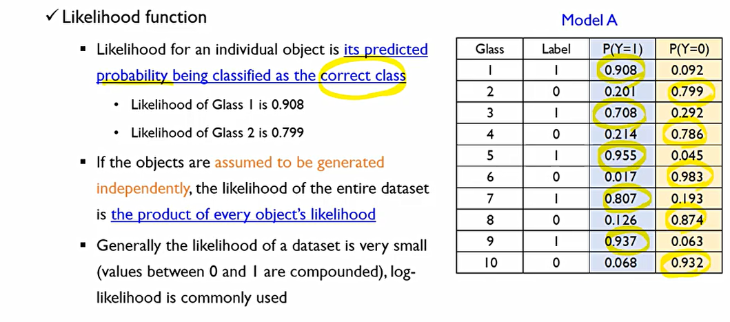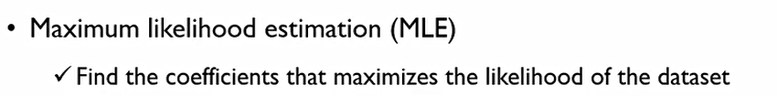 이를 하기 위한 방법론으로, Maximum likelihood estimation(MLE, 최대우도 추정법)를 사용한다. 결국 우리는 데이터셋이 가지는 likelihood를 최대화하는 coefficients를 찾고자 한다.