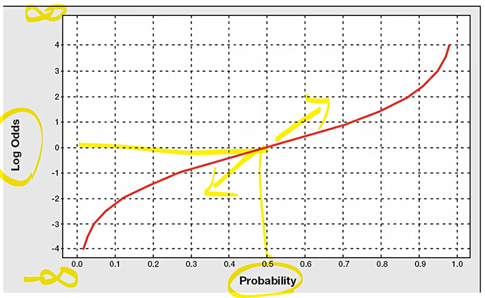 이때, 직선이 의미하는 것이 P=0.5. 이를 기준으로 위로 간다면 P는 1에 가까워지는 것이고, 아래로 간다면 P는 0에 가까워진다고 말할 수 있다.