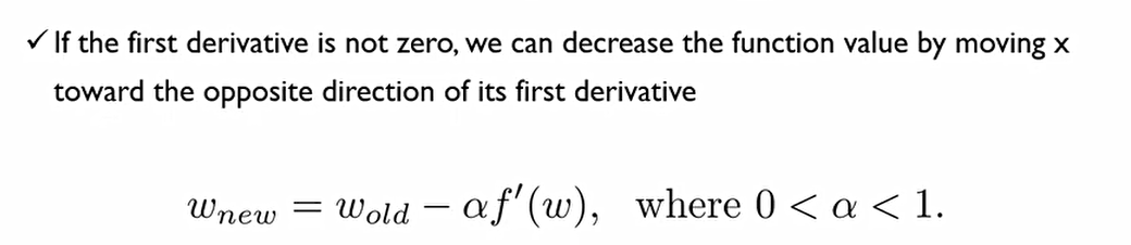 이에 새로운 β^hat을 구하기 위해서는 이전 β^hat을 f'에 해당하는 도함수의 반대방향으로 보내야 한다.