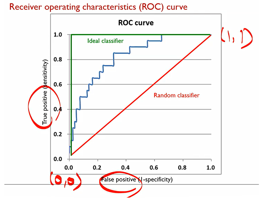 본질적인 performance에 대해서 어떻게 측정할 것인지 그리는 것이 ROC curve.