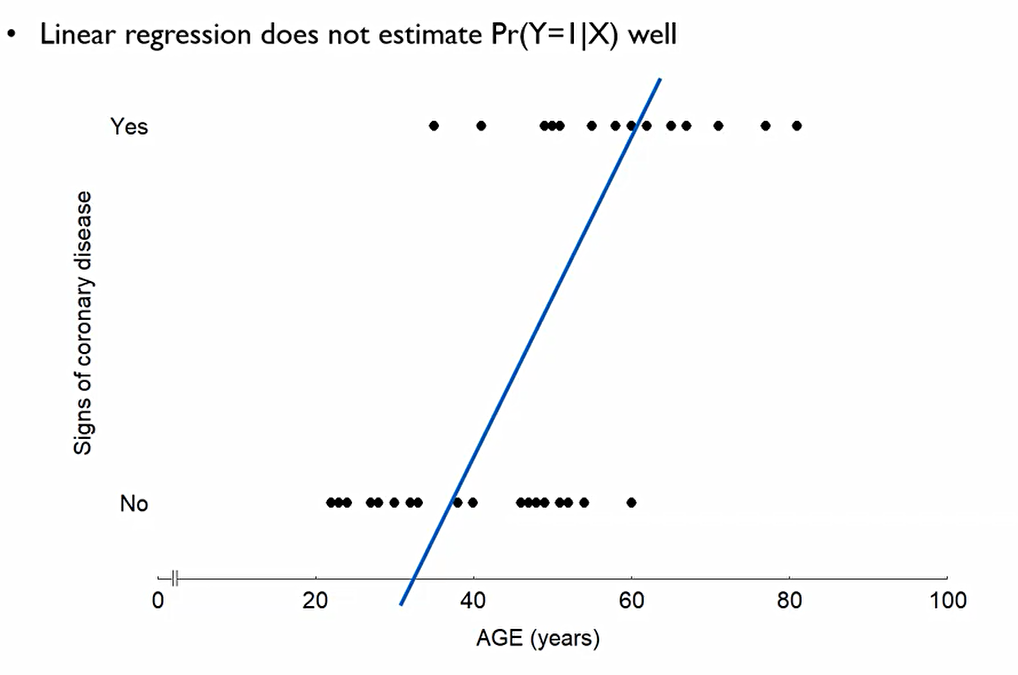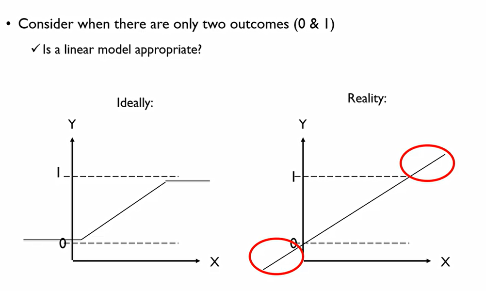 또한 추정된 회귀값이 1 이상으로 올라가거나 0이하로 내려가버릴 수도 있다. 결론적으로 의미가 없어버림.