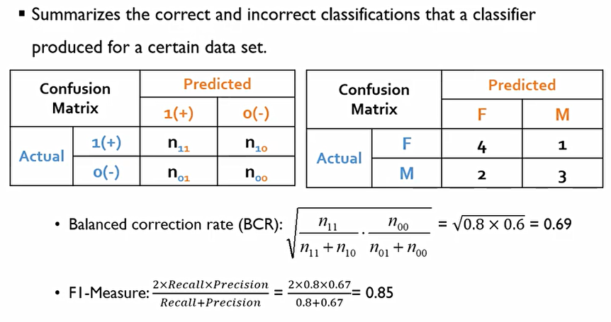 이에 Balanced correction rate(BCR)은 각각의 범주들에 대한 정확도를 따로 계산한 후 기하평균을 씌운다.