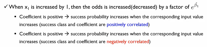 이때, 회귀계수β가 증가한다면 성공확률은 증가하는 것이고, 회귀계수β가 감소한다면 성공확률이 감소하는 것. 이는 로지스틱이나 선형회귀분석이나 공유하는 성질.