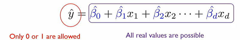 좌변 같은 경우에는 {0,1}로 값이 제한되지만 우변은 연속형의 숫자형이기에 값에 제한이 없다.