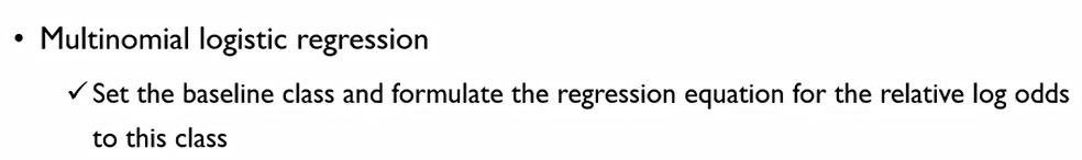핵심은 odds를 계산할 때, P/(1-P)를 success/fail로 표현할 수 있다. 그렇다면 Multinomial Logistic regression에서는 baseline class를 설정하여 이를 분모로 하는 odds를 여러개 만든다.
