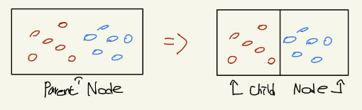 데이터를 구분하는데, 한번만 하는 것이 아닌 child node에서도 특정한 조건을 만족시킬때 까지 여러번 더 분기하는 것. 이때, 아무렇게나 분기하는 것이 아닌 분할 후 purity가 더 증가하는 방향으로 분할한다.