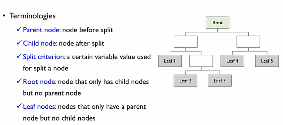 Split criterion은 어떤 기준으로 부모 노드에서 자식노드로 구분되는 것인가에 관한 기준. 우리는 이 구분 기준들에 대해서 학습을 하게 되는 것.